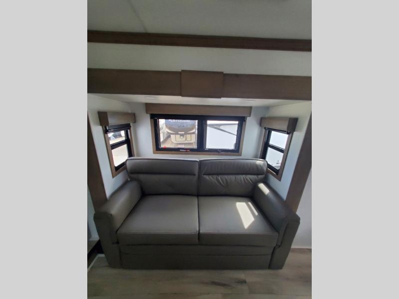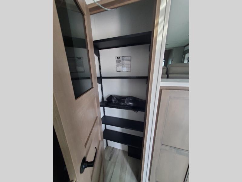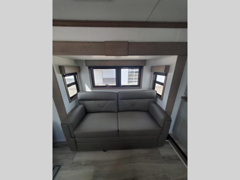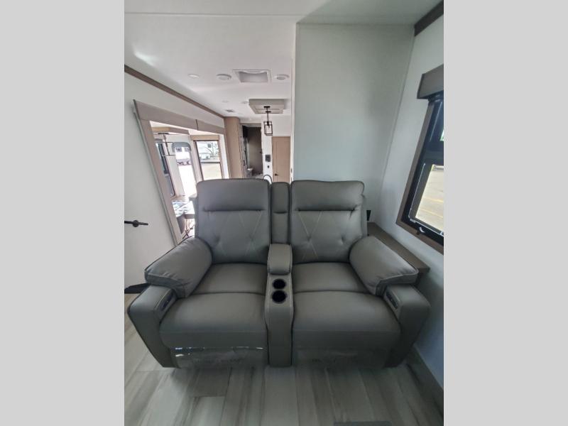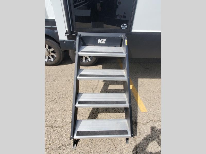 With any KZ Durango Gold full-time luxury fifth wheel, you will enjoy the new Blancher Maple and Morel Fog cabinetry, stainless steel appliances such as a 30" convection microwave and 24" oven with a four burner range, plus a stainless dishwasher. Other top features include an electric tilt bed with Serta Comfort foam king mattress, three 15K A/C units, plus theater seating with powered recline, heat and massage features. You will also appreciate a handy central vacuum system with attachments that stores out of sight. Each Durango Gold is constructed with six-sided aluminum framing, and has a heated, insulated and an enclosed underbelly. It is also constructed with Tufflex roofing material which is flexible, puncture resistant, and reflective. The now standard "Off The Grid" solar package includes two 200W solar panels, a 30A MPPT solar charge controller, and a 2,000W True Sine Wave inverter for off-grid capabilities. If you're wanting to go completely off-grid, you might want to choose the optional Boondocker Solar System with even more features that won't require you to be close to electric hookups!