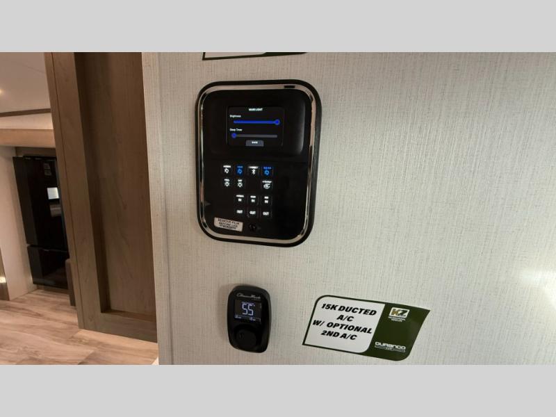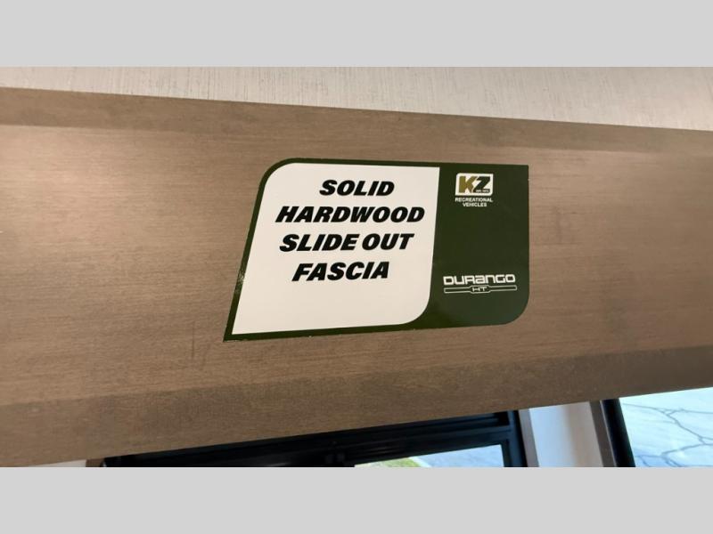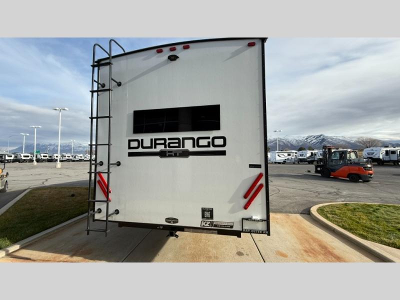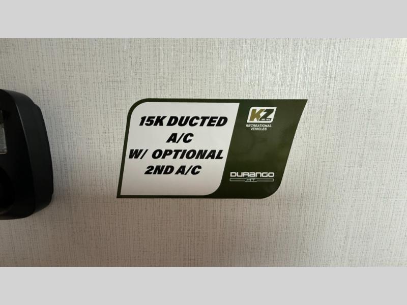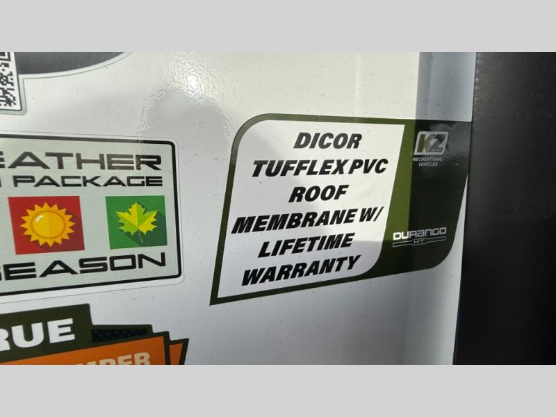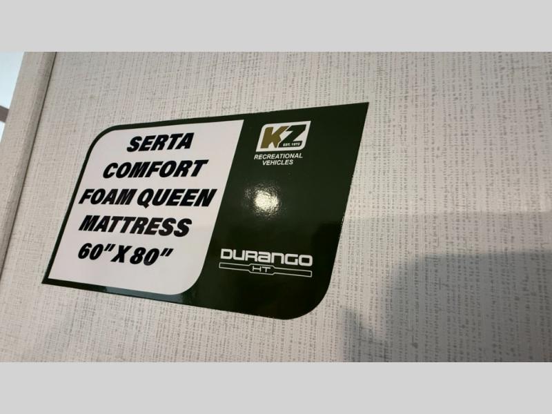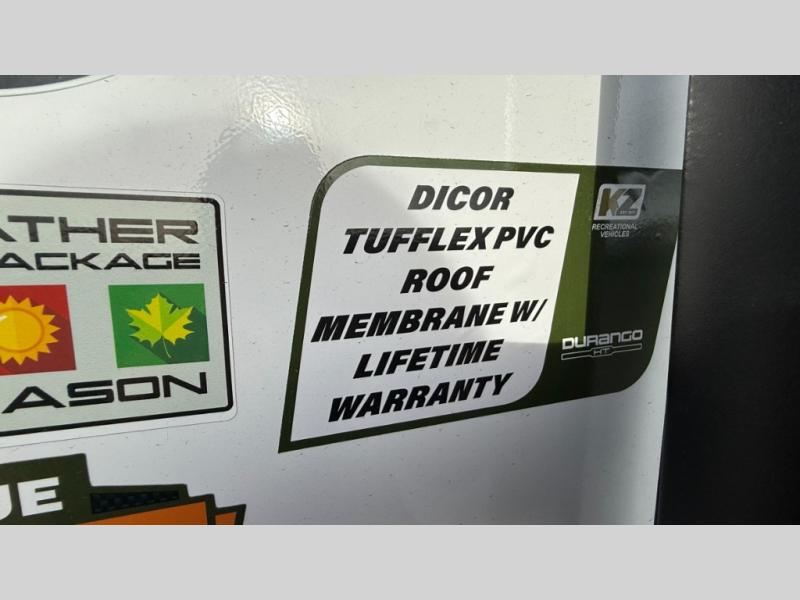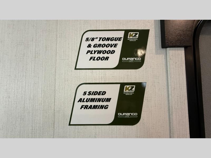 Each Durango Half-Ton fifth wheel by KZ provides lightweight towing with interior luxuries galore! Controlling the functions of your unit will be a breeze with the KZ Engage powered by OneControl that includes new integrated buttons & screen to control awnings, lights, tanks, and more. There are so many exterior conveniences to make each trip enjoyable, like the heated water convenience center, and the flip-up main entry steps! Durable construction includes Tufflex PVC roofing, Pex® in-floor heated waterlines & kitchen gray pipes, and a reinforced heavy-duty fiberglass front cap. The interior will feel more like a residential home with new blancher maple & morel fog cabinets, seamless countertops, a spacious shower, a redesigned front bedroom, and smart storage spaces! You can also customize your fifth wheel to fit your needs with available options, such as, generator prep, wireless backup camera prep, a 32" exterior TV with bracket, and so much more!