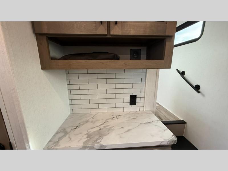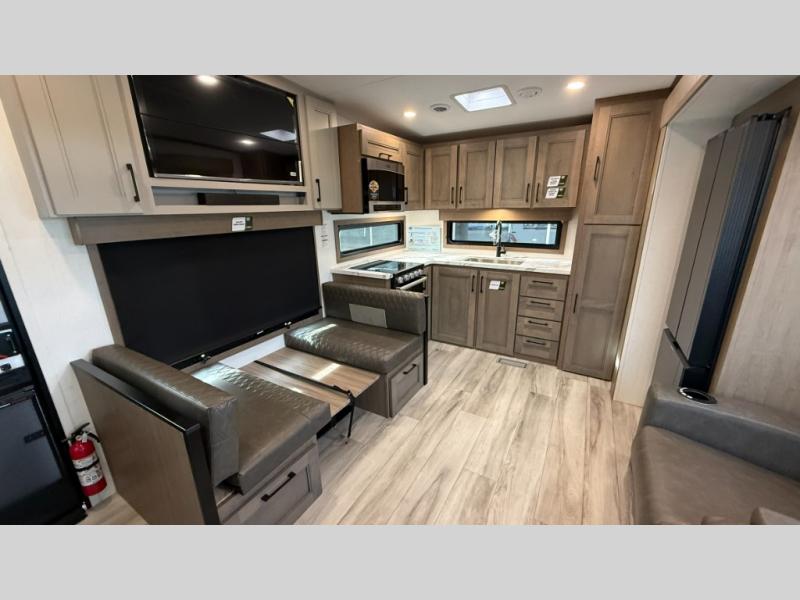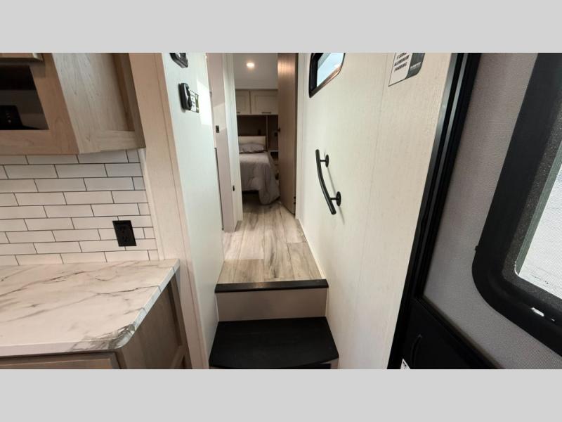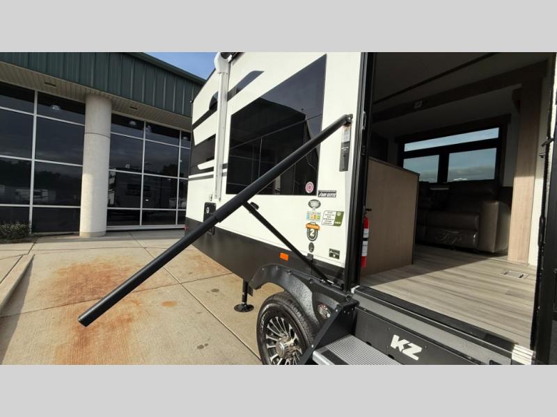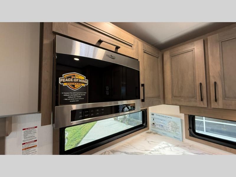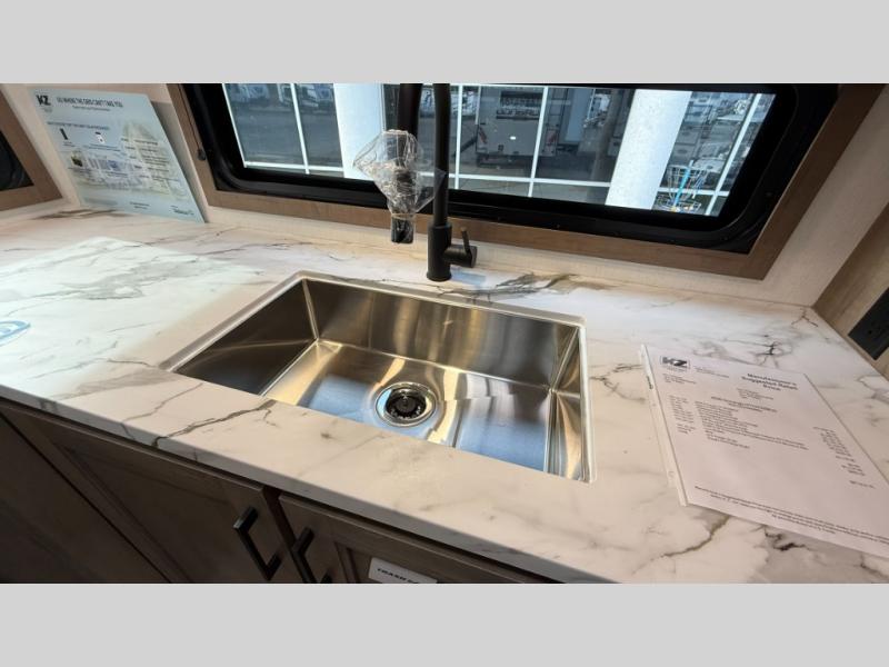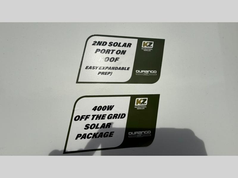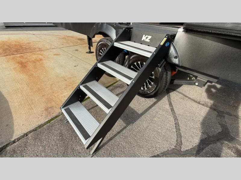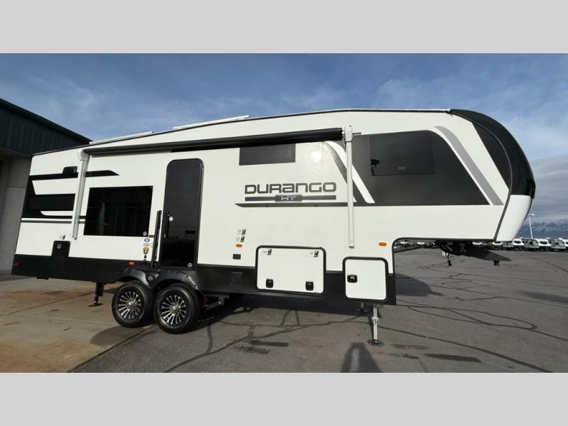 Each Durango Half-Ton fifth wheel by KZ provides lightweight towing with interior luxuries galore! Controlling the functions of your unit will be a breeze with the KZ Engage powered by OneControl that includes new integrated buttons & screen to control awnings, lights, tanks, and more. There are so many exterior conveniences to make each trip enjoyable, like the heated water convenience center, and the flip-up main entry steps! Durable construction includes Tufflex PVC roofing, Pex® in-floor heated waterlines & kitchen gray pipes, and a reinforced heavy-duty fiberglass front cap. The interior will feel more like a residential home with new blancher maple & morel fog cabinets, seamless countertops, a spacious shower, a redesigned front bedroom, and smart storage spaces! You can also customize your fifth wheel to fit your needs with available options, such as, generator prep, wireless backup camera prep, a 32" exterior TV with bracket, and so much more!