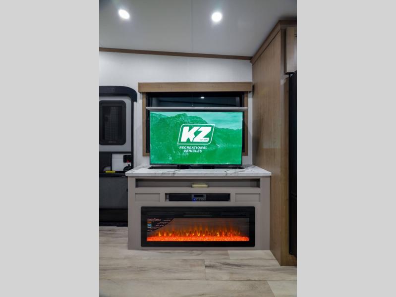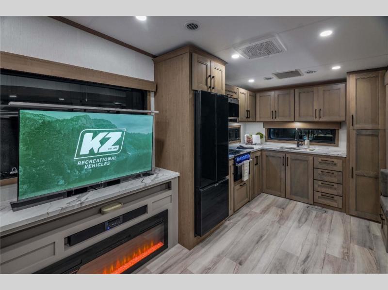 Each Durango Half-Ton fifth wheel by KZ provides lightweight towing with interior luxuries galore! Controlling the functions of your unit will be a breeze with the KZ Engage powered by OneControl that includes new integrated buttons & screen to control awnings, lights, tanks, and more. There are so many exterior conveniences to make each trip enjoyable, like the Dexter® axles with self adjusting brakes & height adjusting hangers metal latches on the baggage doors, heated water convenience center, and the flip-up main entry steps! Durable construction includes Tufflex PVC roofing, Pex® in-floor heated waterlines & kitchen gray pipes, and a reinforced heavy-duty fiberglass front cap. The interior will feel more like a residential home with new blancher cherry cabinets, seamless countertops, a spacious shower, a redesigned front bedroom, and smart storage spaces! You can also customize your fifth wheel to fit your needs with available options, such as, generator prep, wireless backup camera prep, a 32" exterior TV with bracket, and so much more!