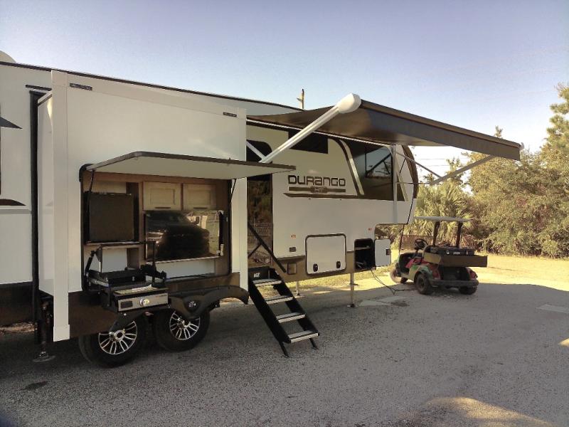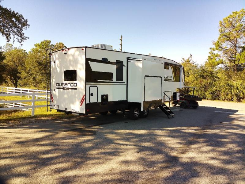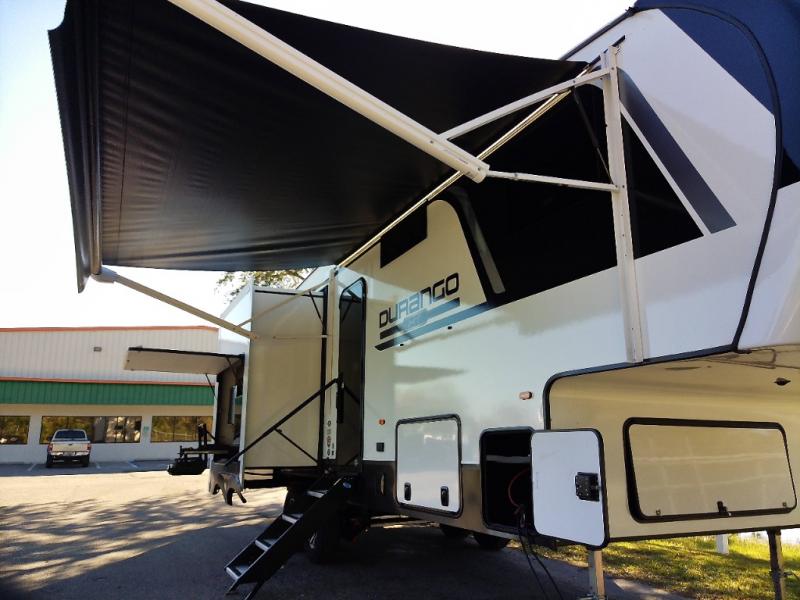 Each Durango Half-Ton fifth wheel by KZ provides lightweight towing with interior luxuries galore! Controlling the functions of your unit will be a breeze with the KZ Engage powered by OneControl that includes new integrated buttons & screen to control awnings, lights, tanks, and more. There are so many exterior conveniences to make each trip enjoyable, like the Dexter® axles with self adjusting brakes & height adjusting hangers metal latches on the baggage doors, heated water convenience center, and the flip-up main entry steps! Durable construction includes Tufflex PVC roofing, Pex® in-floor heated waterlines & kitchen gray pipes, and a reinforced heavy-duty fiberglass front cap. The interior will feel more like a residential home with new blancher cherry cabinets, seamless countertops, a spacious shower, a redesigned front bedroom, and smart storage spaces! You can also customize your fifth wheel to fit your needs with available options, such as, generator prep, wireless backup camera prep, a 32" exterior TV with bracket, and so much more!