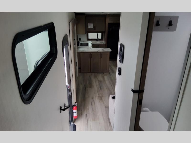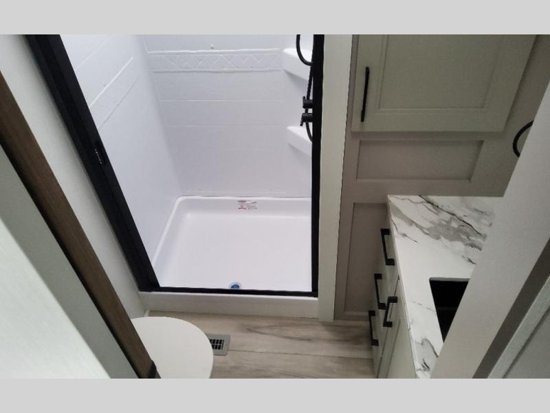 Each Durango Half-Ton fifth wheel by KZ provides lightweight towing with interior luxuries galore! Controlling the functions of your unit will be a breeze with the KZ Engage powered by OneControl that includes new integrated buttons & screen to control awnings, lights, tanks, and more. There are so many exterior conveniences to make each trip enjoyable, like the heated water convenience center, and the flip-up main entry steps! Durable construction includes Tufflex PVC roofing, Pex® in-floor heated waterlines & kitchen gray pipes, and a reinforced heavy-duty fiberglass front cap. The interior will feel more like a residential home with new blancher maple & morel fog cabinets, seamless countertops, a spacious shower, a redesigned front bedroom, and smart storage spaces! You can also customize your fifth wheel to fit your needs with available options, such as, generator prep, wireless backup camera prep, a 32" exterior TV with bracket, and so much more!