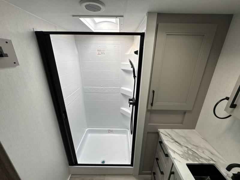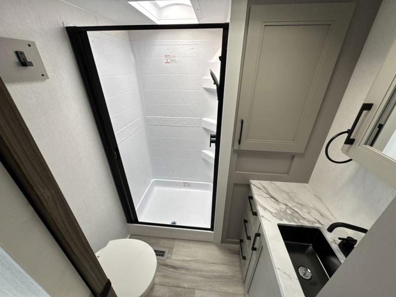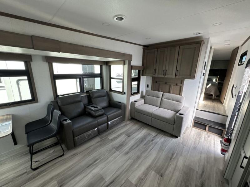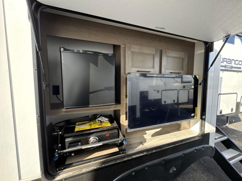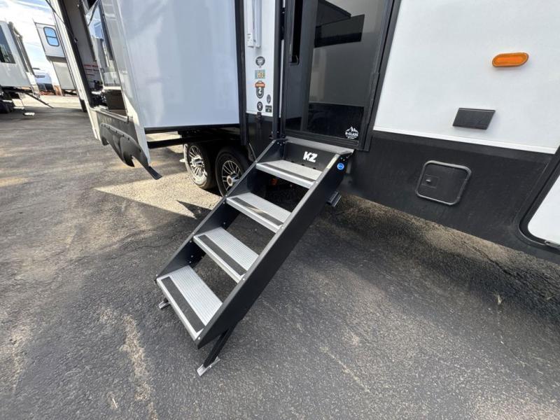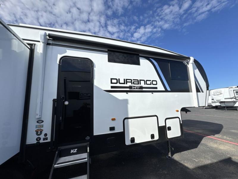Each Durango Half-Ton fifth wheel by KZ provides lightweight towing with interior luxuries galore! Controlling the functions of your unit will be a breeze with the KZ Engage powered by OneControl that includes new integrated buttons & screen to control awnings, lights, tanks, and more. There are so many exterior conveniences to make each trip enjoyable, like the heated water convenience center, and the flip-up main entry steps! Durable construction includes Tufflex PVC roofing, Pex® in-floor heated waterlines & kitchen gray pipes, and a reinforced heavy-duty fiberglass front cap. The interior will feel more like a residential home with new blancher maple & morel fog cabinets, seamless countertops, a spacious shower, a redesigned front bedroom, and smart storage spaces! You can also customize your fifth wheel to fit your needs with available options, such as, generator prep, wireless backup camera prep, a 32" exterior TV with bracket, and so much more!