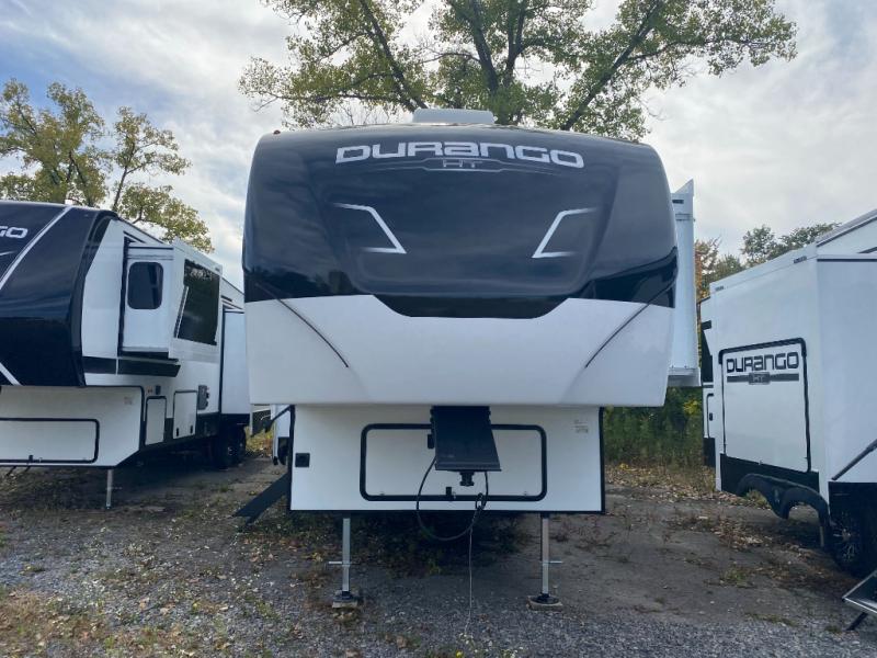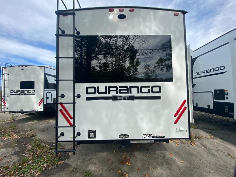 Each Durango Half-Ton fifth wheel by KZ provides lightweight towing with interior luxuries galore! Controlling the functions of your unit will be a breeze with the KZ Engage powered by OneControl that includes new integrated buttons & screen to control awnings, lights, tanks, and more. There are so many exterior conveniences to make each trip enjoyable, like the heated water convenience center, and the flip-up main entry steps! Durable construction includes Tufflex PVC roofing, Pex® in-floor heated waterlines & kitchen gray pipes, and a reinforced heavy-duty fiberglass front cap. The interior will feel more like a residential home with new blancher maple & morel fog cabinets, seamless countertops, a spacious shower, a redesigned front bedroom, and smart storage spaces! You can also customize your fifth wheel to fit your needs with available options, such as, generator prep, wireless backup camera prep, a 32" exterior TV with bracket, and so much more!