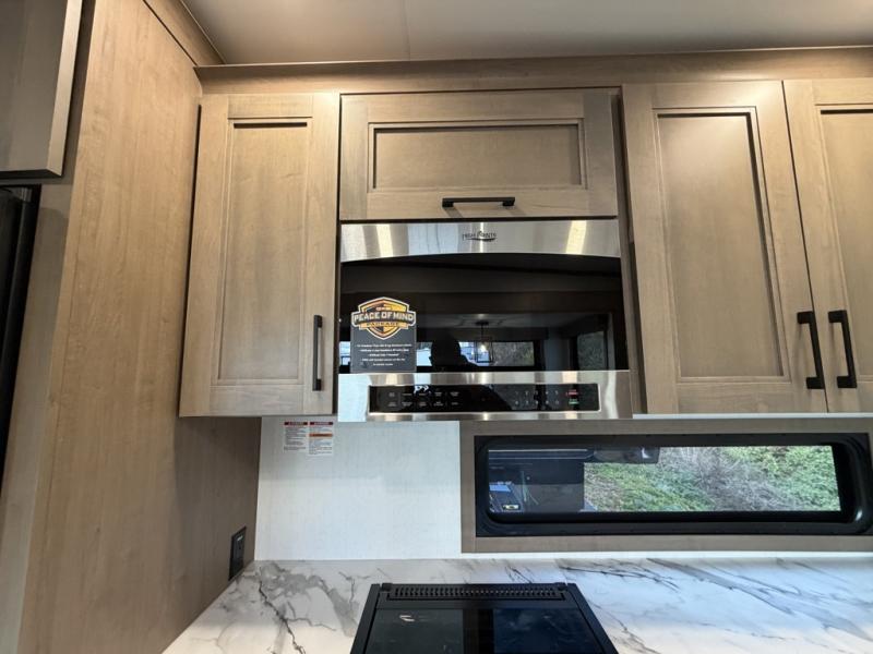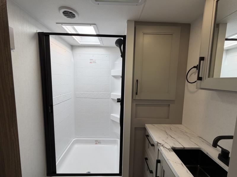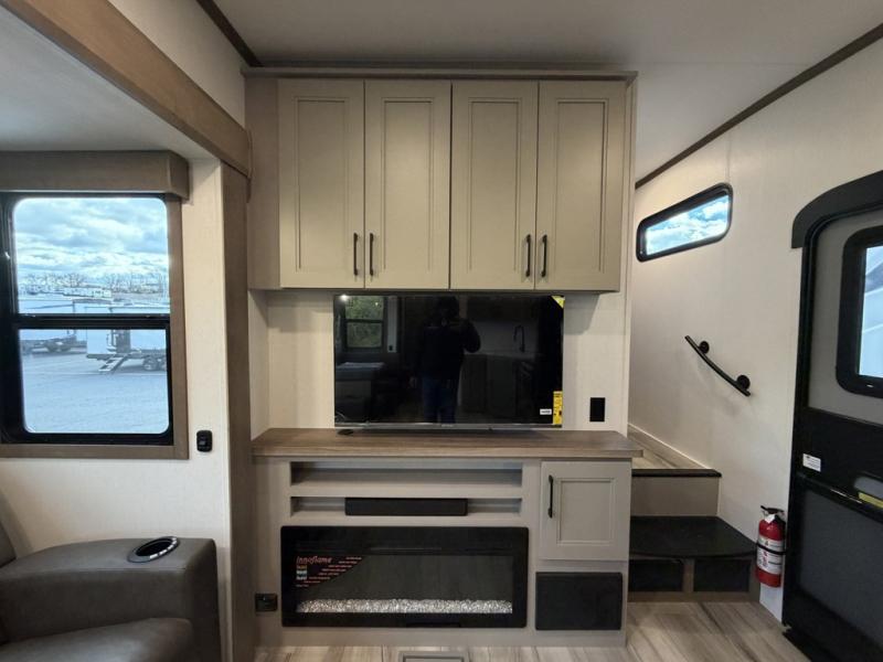 Each Durango Half-Ton fifth wheel by KZ provides lightweight towing with interior luxuries galore! Controlling the functions of your unit will be a breeze with the KZ Engage powered by OneControl that includes new integrated buttons & screen to control awnings, lights, tanks, and more. There are so many exterior conveniences to make each trip enjoyable, like the heated water convenience center, and the flip-up main entry steps! Durable construction includes Tufflex PVC roofing, Pex® in-floor heated waterlines & kitchen gray pipes, and a reinforced heavy-duty fiberglass front cap. The interior will feel more like a residential home with new blancher maple & morel fog cabinets, seamless countertops, a spacious shower, a redesigned front bedroom, and smart storage spaces! You can also customize your fifth wheel to fit your needs with available options, such as, generator prep, wireless backup camera prep, a 32" exterior TV with bracket, and so much more!