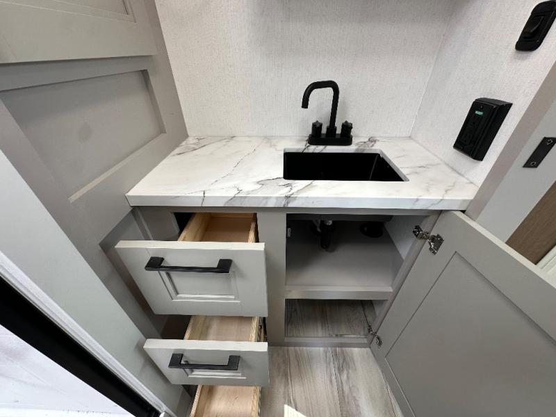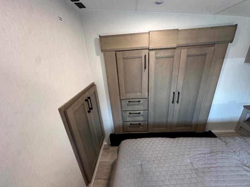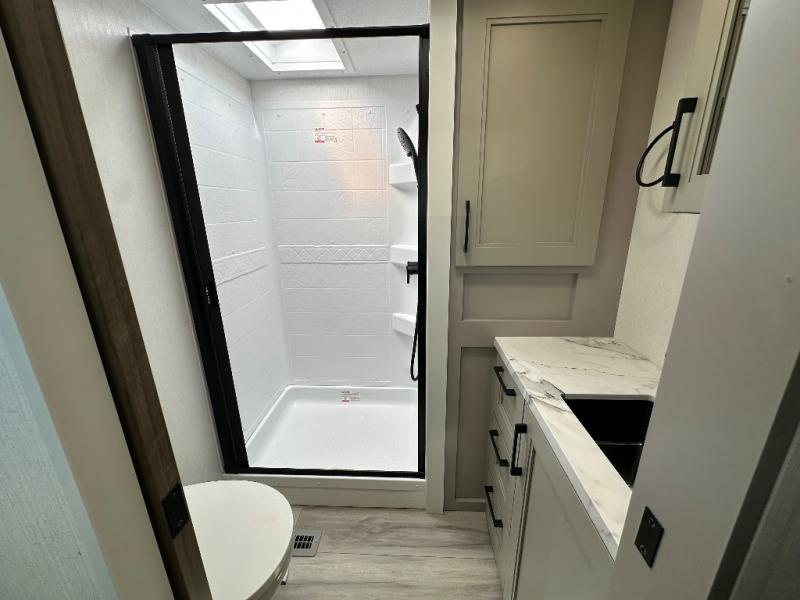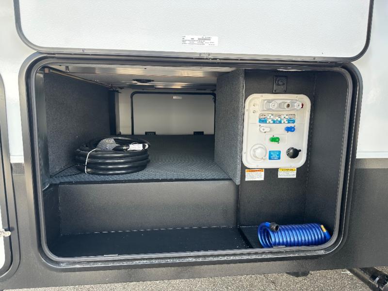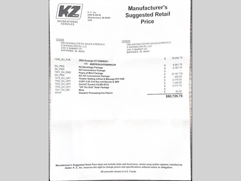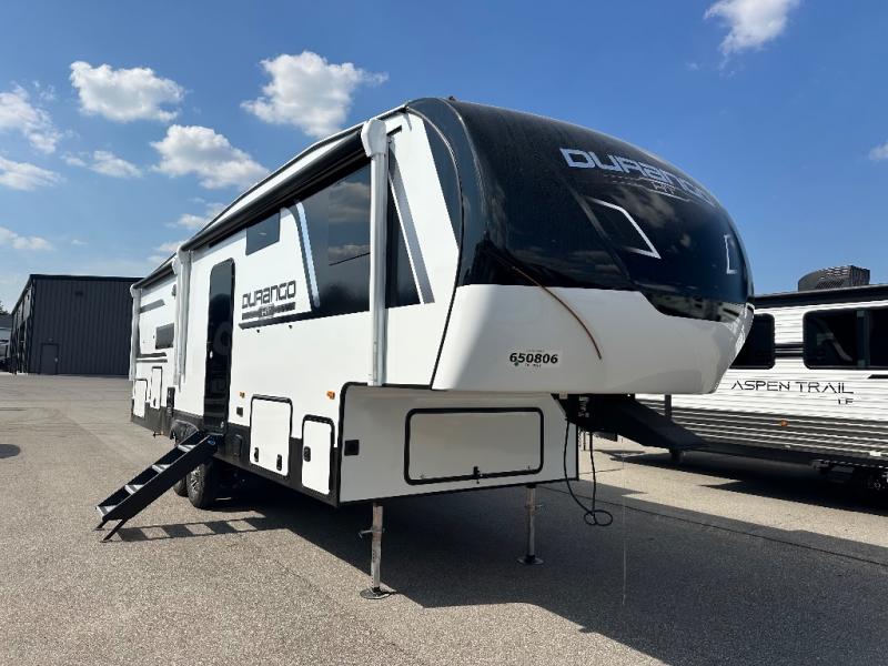 Each Durango Half-Ton fifth wheel by KZ provides lightweight towing with interior luxuries galore! Controlling the functions of your unit will be a breeze with the KZ Engage powered by OneControl that includes new integrated buttons & screen to control awnings, lights, tanks, and more. There are so many exterior conveniences to make each trip enjoyable, like the heated water convenience center, and the flip-up main entry steps! Durable construction includes Tufflex PVC roofing, Pex® in-floor heated waterlines & kitchen gray pipes, and a reinforced heavy-duty fiberglass front cap. The interior will feel more like a residential home with new blancher maple & morel fog cabinets, seamless countertops, a spacious shower, a redesigned front bedroom, and smart storage spaces! You can also customize your fifth wheel to fit your needs with available options, such as, generator prep, wireless backup camera prep, a 32" exterior TV with bracket, and so much more!