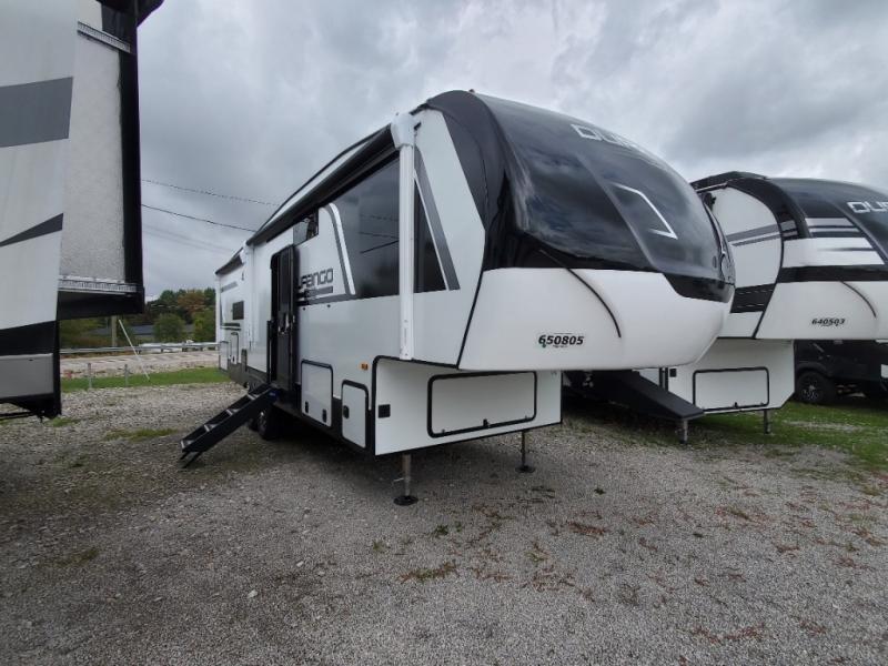 Each Durango Half-Ton fifth wheel by KZ provides lightweight towing with interior luxuries galore! Controlling the functions of your unit will be a breeze with the KZ Engage powered by OneControl that includes new integrated buttons & screen to control awnings, lights, tanks, and more. There are so many exterior conveniences to make each trip enjoyable, like the heated water convenience center, and the flip-up main entry steps! Durable construction includes Tufflex PVC roofing, Pex® in-floor heated waterlines & kitchen gray pipes, and a reinforced heavy-duty fiberglass front cap. The interior will feel more like a residential home with new blancher maple & morel fog cabinets, seamless countertops, a spacious shower, a redesigned front bedroom, and smart storage spaces! You can also customize your fifth wheel to fit your needs with available options, such as, generator prep, wireless backup camera prep, a 32" exterior TV with bracket, and so much more!