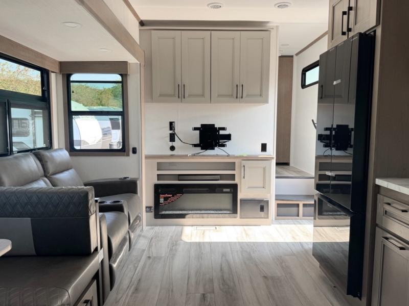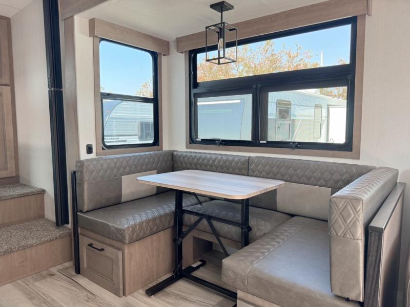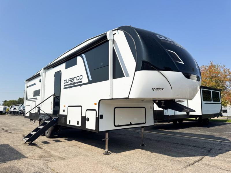 Each Durango Half-Ton fifth wheel by KZ provides lightweight towing with interior luxuries galore! Controlling the functions of your unit will be a breeze with the KZ Engage powered by OneControl that includes new integrated buttons & screen to control awnings, lights, tanks, and more. There are so many exterior conveniences to make each trip enjoyable, like the heated water convenience center, and the flip-up main entry steps! Durable construction includes Tufflex PVC roofing, Pex® in-floor heated waterlines & kitchen gray pipes, and a reinforced heavy-duty fiberglass front cap. The interior will feel more like a residential home with new blancher maple & morel fog cabinets, seamless countertops, a spacious shower, a redesigned front bedroom, and smart storage spaces! You can also customize your fifth wheel to fit your needs with available options, such as, generator prep, wireless backup camera prep, a 32" exterior TV with bracket, and so much more!