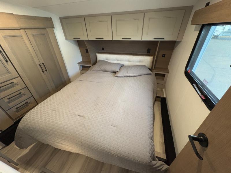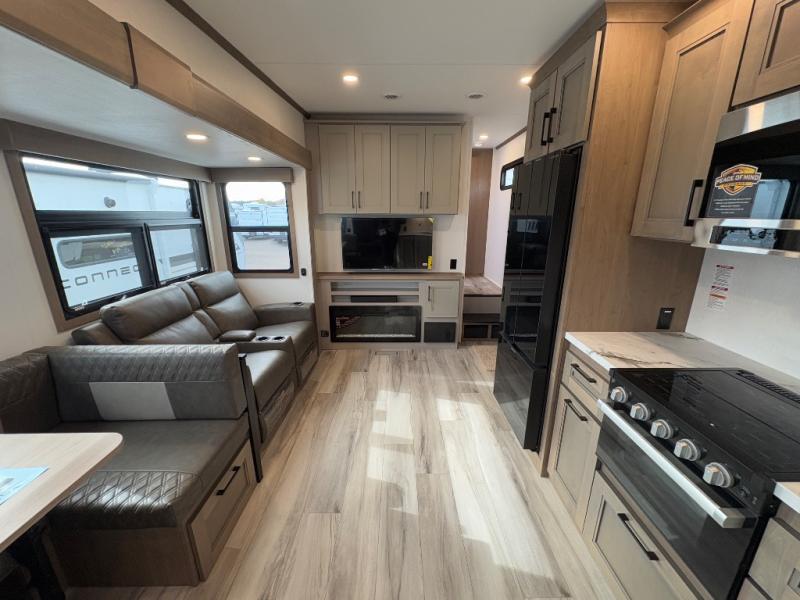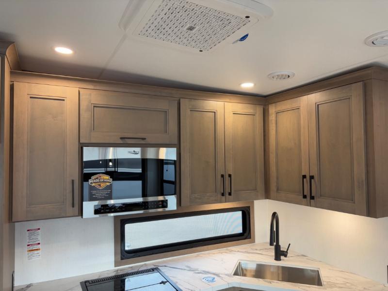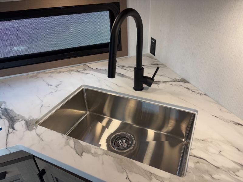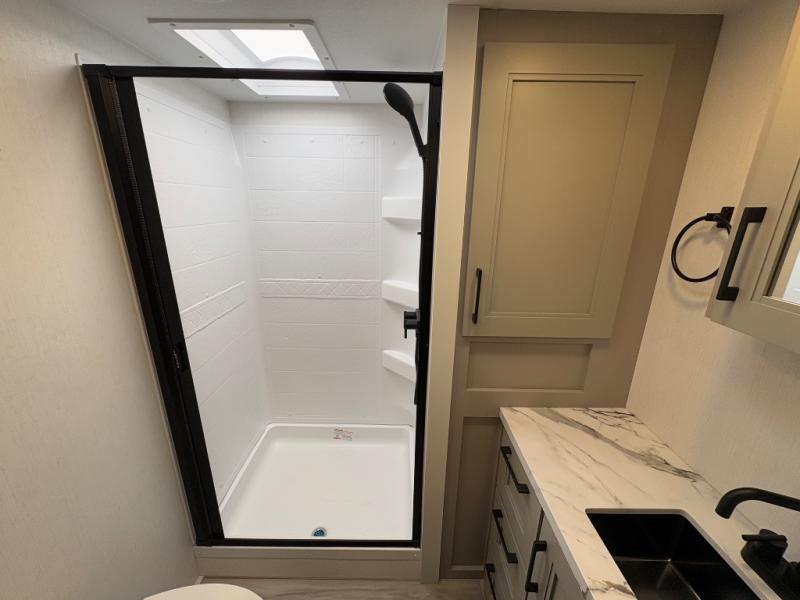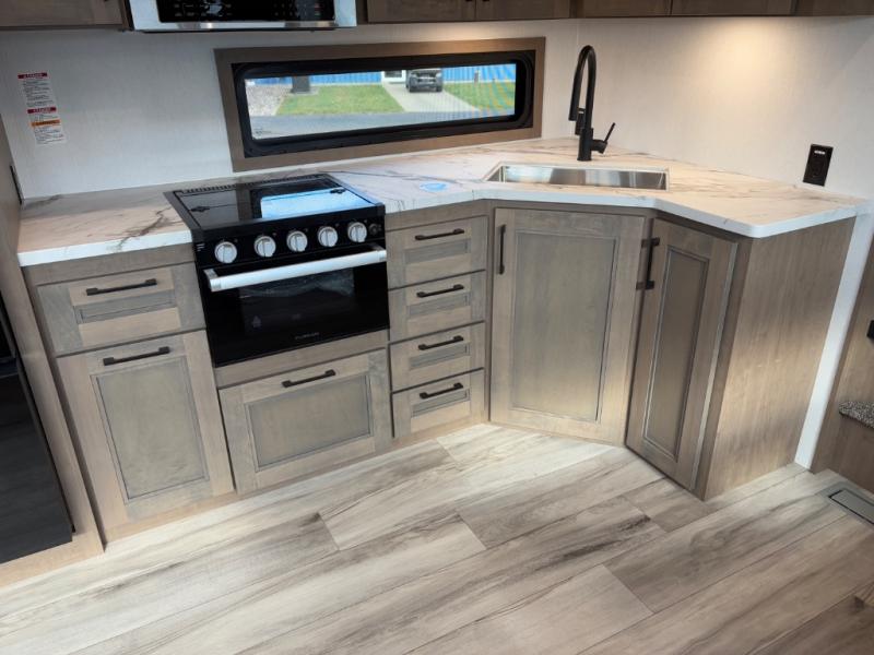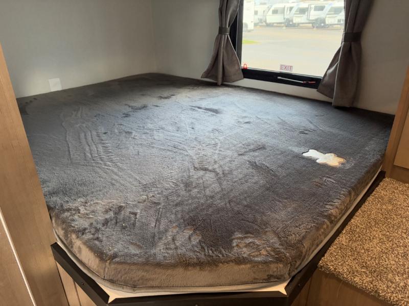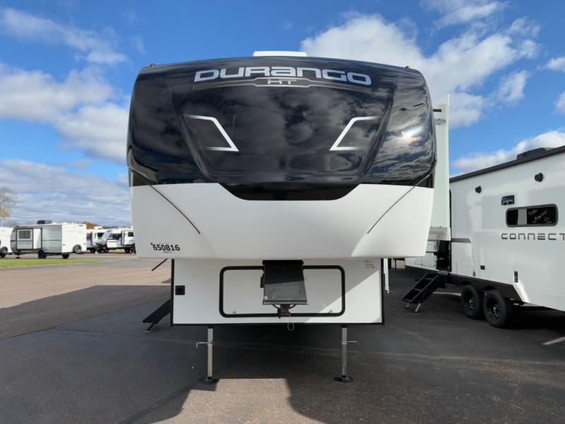 Each Durango Half-Ton fifth wheel by KZ provides lightweight towing with interior luxuries galore! Controlling the functions of your unit will be a breeze with the KZ Engage powered by OneControl that includes new integrated buttons & screen to control awnings, lights, tanks, and more. There are so many exterior conveniences to make each trip enjoyable, like the heated water convenience center, and the flip-up main entry steps! Durable construction includes Tufflex PVC roofing, Pex® in-floor heated waterlines & kitchen gray pipes, and a reinforced heavy-duty fiberglass front cap. The interior will feel more like a residential home with new blancher maple & morel fog cabinets, seamless countertops, a spacious shower, a redesigned front bedroom, and smart storage spaces! You can also customize your fifth wheel to fit your needs with available options, such as, generator prep, wireless backup camera prep, a 32" exterior TV with bracket, and so much more!
