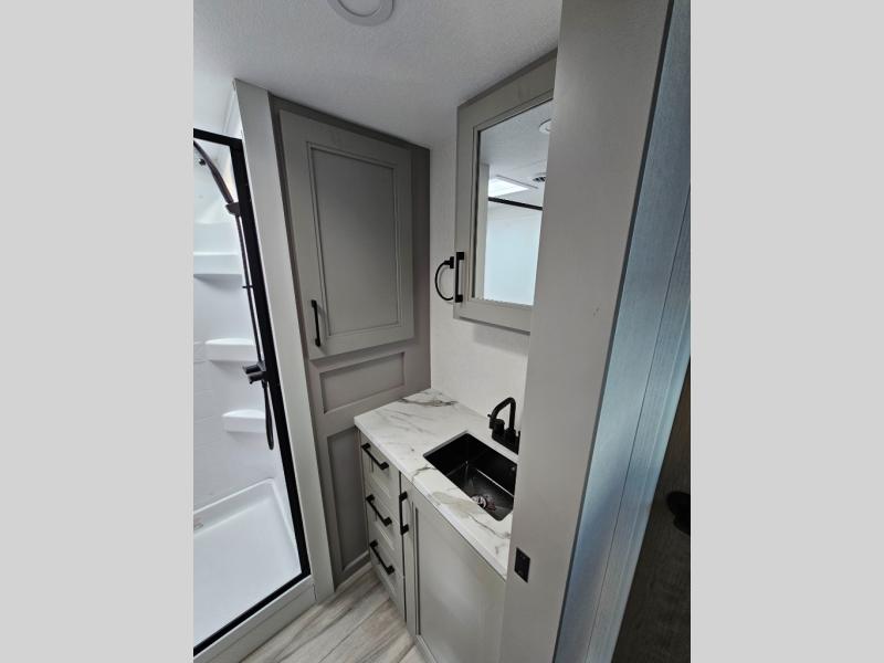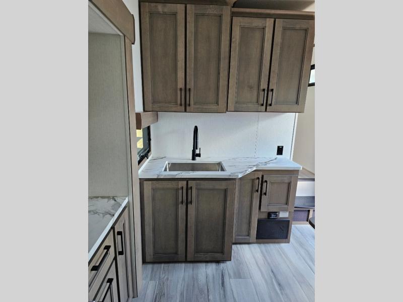 Each Durango Half-Ton fifth wheel by KZ provides lightweight towing with interior luxuries galore! Controlling the functions of your unit will be a breeze with the KZ Engage powered by OneControl that includes new integrated buttons & screen to control awnings, lights, tanks, and more. There are so many exterior conveniences to make each trip enjoyable, like the heated water convenience center, and the flip-up main entry steps! Durable construction includes Tufflex PVC roofing, Pex® in-floor heated waterlines & kitchen gray pipes, and a reinforced heavy-duty fiberglass front cap. The interior will feel more like a residential home with new blancher maple & morel fog cabinets, seamless countertops, a spacious shower, a redesigned front bedroom, and smart storage spaces! You can also customize your fifth wheel to fit your needs with available options, such as, generator prep, wireless backup camera prep, a 32" exterior TV with bracket, and so much more!
