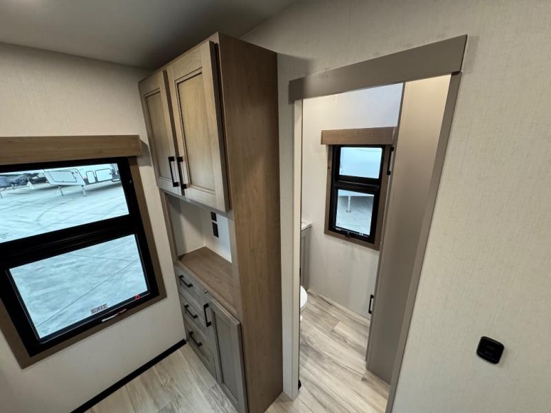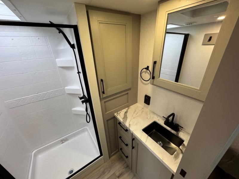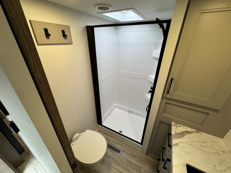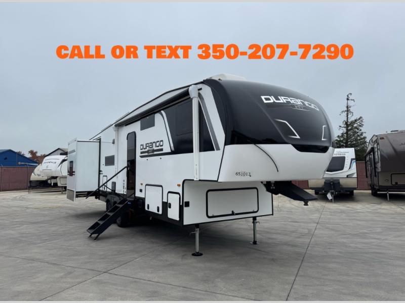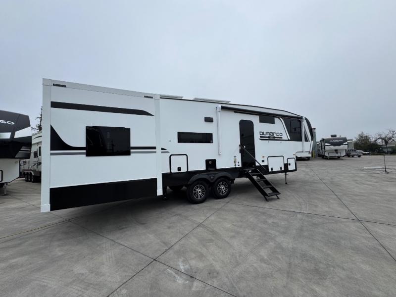 Each Durango Half-Ton fifth wheel by KZ provides lightweight towing with interior luxuries galore! Controlling the functions of your unit will be a breeze with the KZ Engage powered by OneControl that includes new integrated buttons & screen to control awnings, lights, tanks, and more. There are so many exterior conveniences to make each trip enjoyable, like the heated water convenience center, and the flip-up main entry steps! Durable construction includes Tufflex PVC roofing, Pex® in-floor heated waterlines & kitchen gray pipes, and a reinforced heavy-duty fiberglass front cap. The interior will feel more like a residential home with new blancher maple & morel fog cabinets, seamless countertops, a spacious shower, a redesigned front bedroom, and smart storage spaces! You can also customize your fifth wheel to fit your needs with available options, such as, generator prep, wireless backup camera prep, a 32" exterior TV with bracket, and so much more!