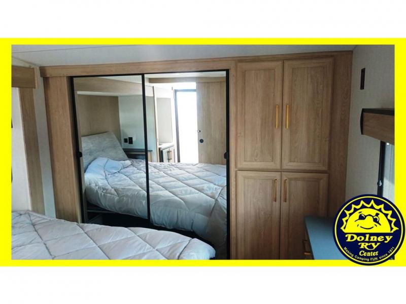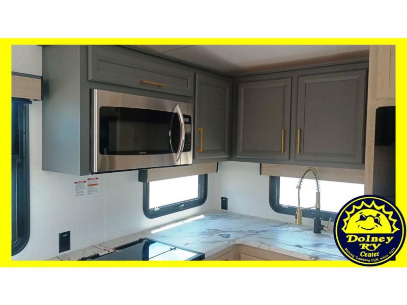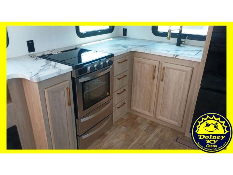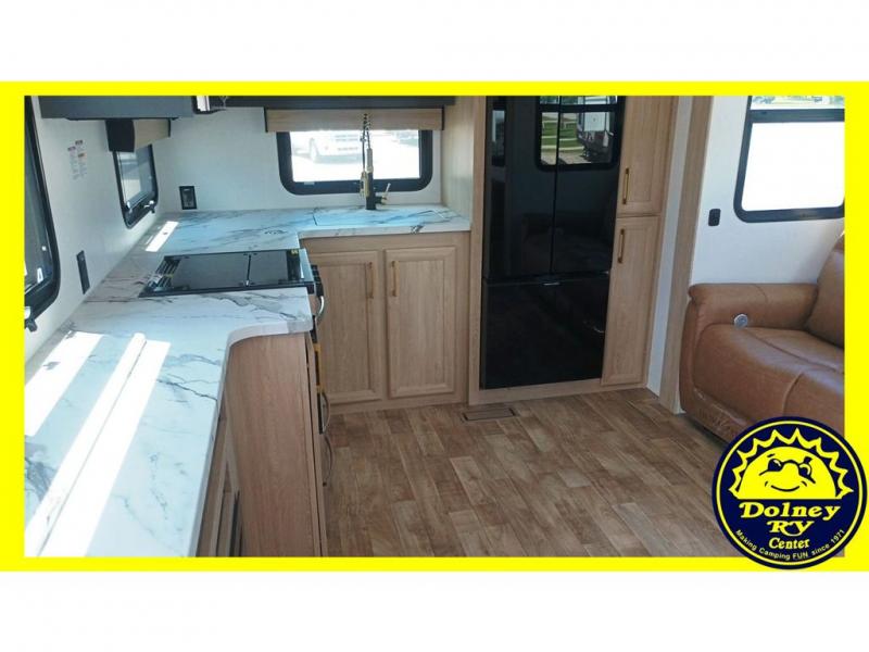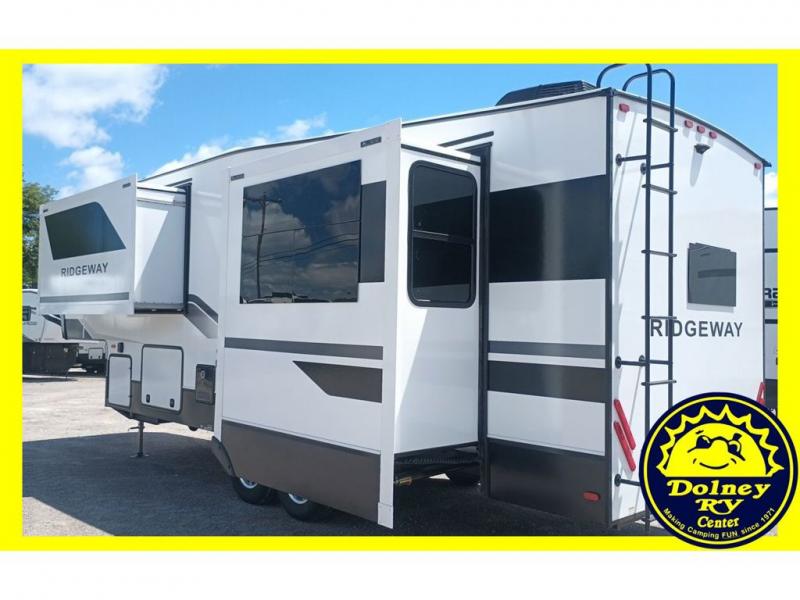 When you choose a Ridgeway fifth wheel by KZ you are choosing a modern design, convenient features, and comfort at every turn! These units have been constructed with some of the most durable materials in the industry, including Azdel composite panels and Tufflex roofing material. The exterior includes a full painted front cap, a fully-finished, heated and sealed basement storage compartment, and a deluxe heated water convenience center to easily monitor your units water levels. There is also 4-point auto electric leveling, Keyed-Alike for baggage and entry doors, a 2" towing receiver hitch, and many more stand-out exterior features. Once inside, you'll enjoy the ceiling crown molding, 5" gold cabinet hardware, deluxe residential-style furniture, and all-wood lumber core screwed cabinets with hardwood doors. The comforts continue on in the bathroom and bedroom with a shower skylight and built-in seat, large linen closets, a luxurious bedspread, and XL under-bed storage for luggage, extra blankets and more!