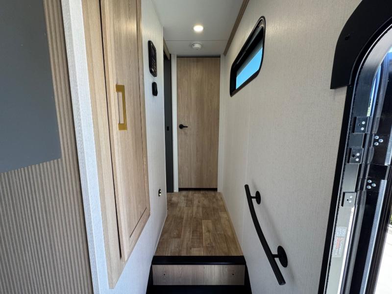 Cooking on the road is easy with the 21" oven, 30" microwave, French door refrigerator, and a large pantry for dry goods. The extended countertop gives you more prep space, while the open floorplan keeps you connected to guests in the living area.