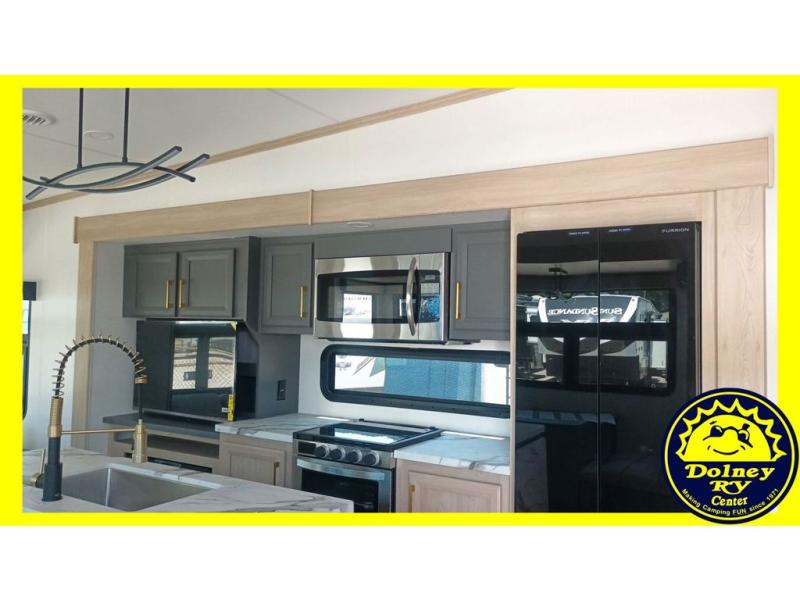 When you choose a Ridgeway fifth wheel by KZ you are choosing a modern design, convenient features, and comfort at every turn! These units have been constructed with some of the most durable materials in the industry, including Azdel composite panels and Tufflex roofing material. The exterior includes a full painted front cap, a fully-finished, heated and sealed basement storage compartment, and a deluxe heated water convenience center to easily monitor your units water levels. There is also 4-point auto electric leveling, Keyed-Alike for baggage and entry doors, a 2" towing receiver hitch, and many more stand-out exterior features. Once inside, you'll enjoy the ceiling crown molding, 5" gold cabinet hardware, deluxe residential-style furniture, and all-wood lumber core screwed cabinets with hardwood doors. The comforts continue on in the bathroom and bedroom with a shower skylight and built-in seat, large linen closets, a luxurious bedspread, and XL under-bed storage for luggage, extra blankets and more!