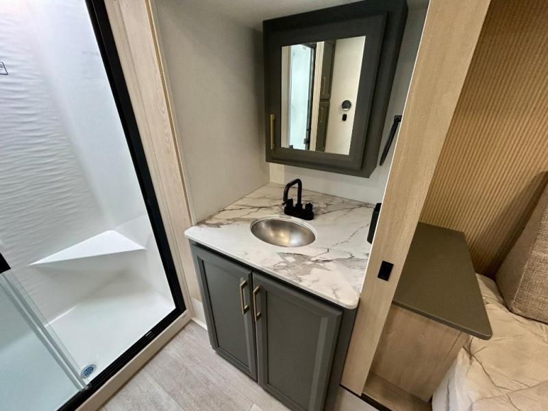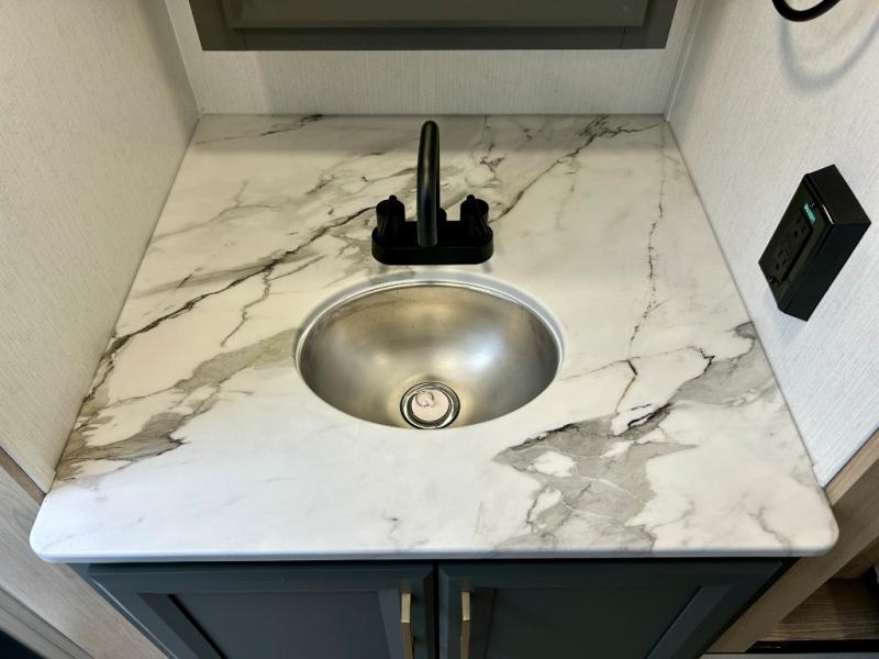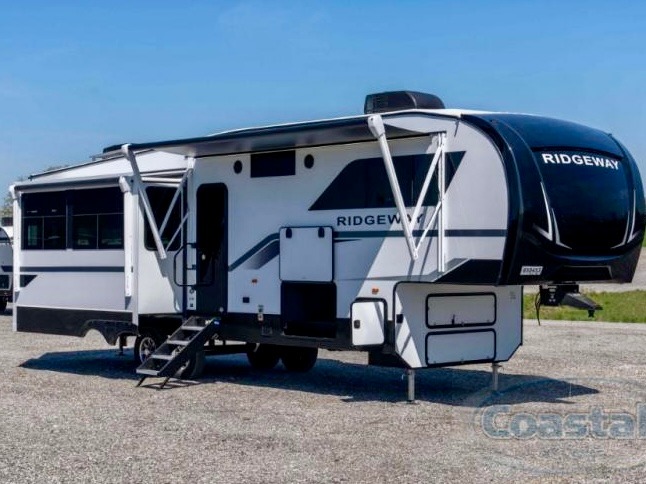 When you choose a Ridgeway fifth wheel by KZ you are choosing a modern design, convenient features, and comfort at every turn! These units have been constructed with some of the most durable materials in the industry, including Azdel composite panels and Tufflex roofing material. The exterior includes a full painted front cap, a fully-finished, heated and sealed basement storage compartment, and a deluxe heated water convenience center to easily monitor your units water levels. There is also 4-point auto electric leveling, Keyed-Alike for baggage and entry doors, a 2" towing receiver hitch, and many more stand-out exterior features. Once inside, you'll enjoy the ceiling crown molding, 5" gold cabinet hardware, deluxe residential-style furniture, and all-wood lumber core screwed cabinets with hardwood doors. The comforts continue on in the bathroom and bedroom with a shower skylight and built-in seat, large linen closets, a luxurious bedspread, and XL under-bed storage for luggage, extra blankets and more!