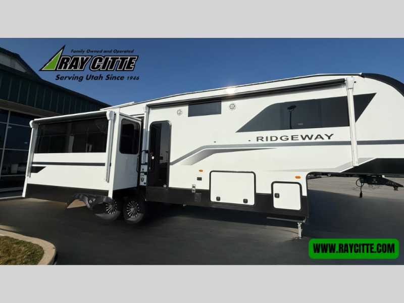 When you choose a Ridgeway fifth wheel by KZ you are choosing a modern design, convenient features, and comfort at every turn! These units have been constructed with some of the most durable materials in the industry, including Tufflex roofing material. The exterior includes a full painted front cap, a fully-finished, heated and sealed basement storage compartment, and a deluxe heated water convenience center to easily monitor your units water levels. There is also 4-point auto electric leveling, a 2" towing receiver hitch, and many more stand-out exterior features. Once inside, you'll enjoy the ceiling crown molding, 5" gold cabinet hardware, deluxe residential-style furniture, and all-wood lumber core screwed cabinets with hardwood doors. The comforts continue on in the bathroom and bedroom with a shower skylight and built-in seat, large linen closets, a luxurious bedspread, and XL under-bed storage for luggage, extra blankets and more!