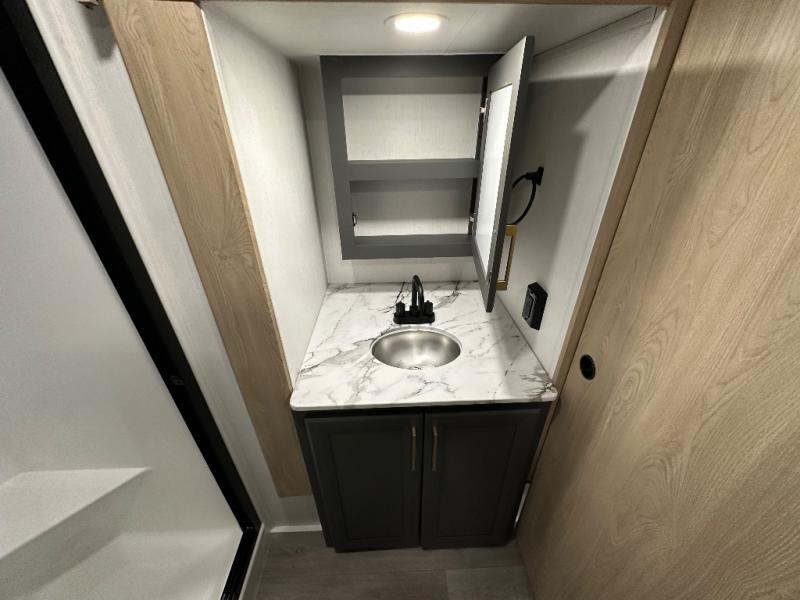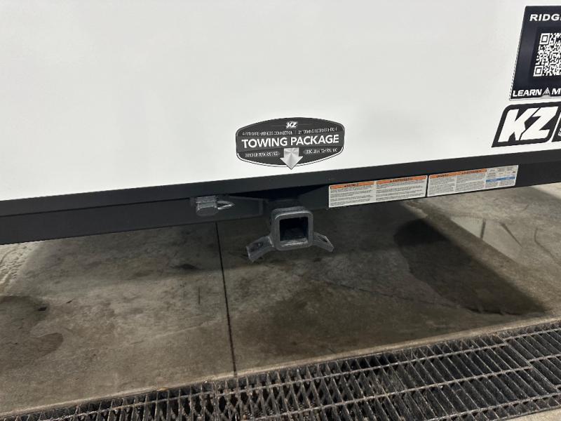 When you choose a Ridgeway fifth wheel by KZ you are choosing a modern design, convenient features, and comfort at every turn! These units have been constructed with some of the most durable materials in the industry, including Tufflex roofing material. The exterior includes a full painted front cap, a fully-finished, heated and sealed basement storage compartment, and a deluxe heated water convenience center to easily monitor your units water levels. There is also 4-point auto electric leveling, a 2" towing receiver hitch, and many more stand-out exterior features. Once inside, you'll enjoy the ceiling crown molding, 5" gold cabinet hardware, deluxe residential-style furniture, and all-wood lumber core screwed cabinets with hardwood doors. The comforts continue on in the bathroom and bedroom with a shower skylight and built-in seat, large linen closets, a luxurious bedspread, and XL under-bed storage for luggage, extra blankets and more!