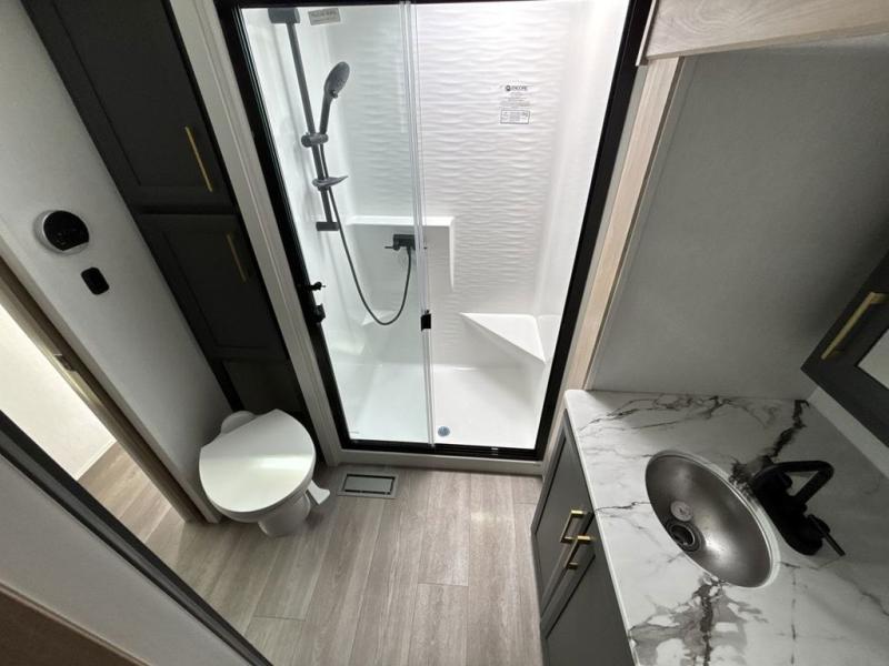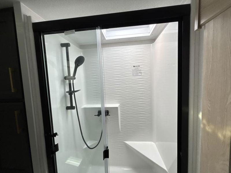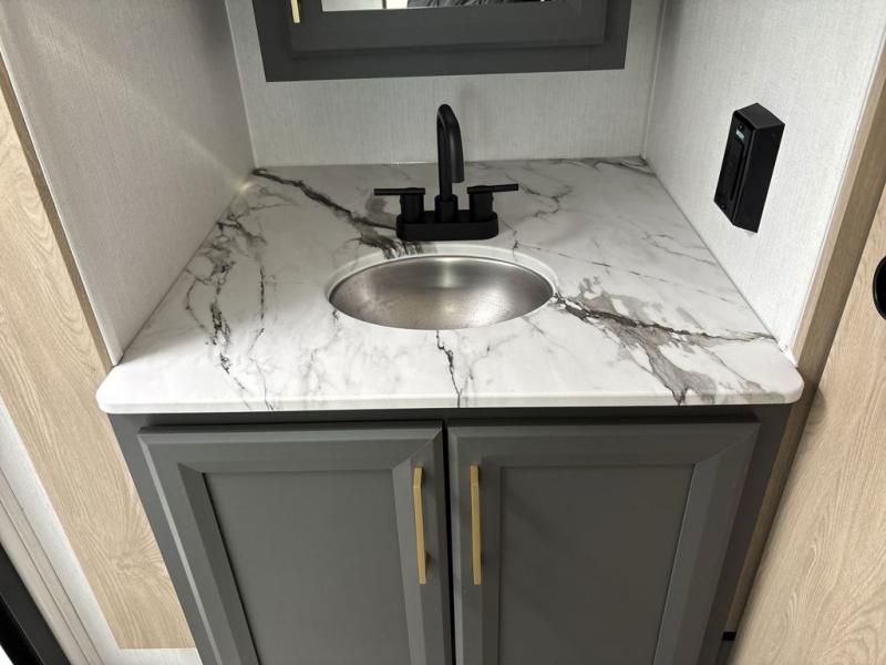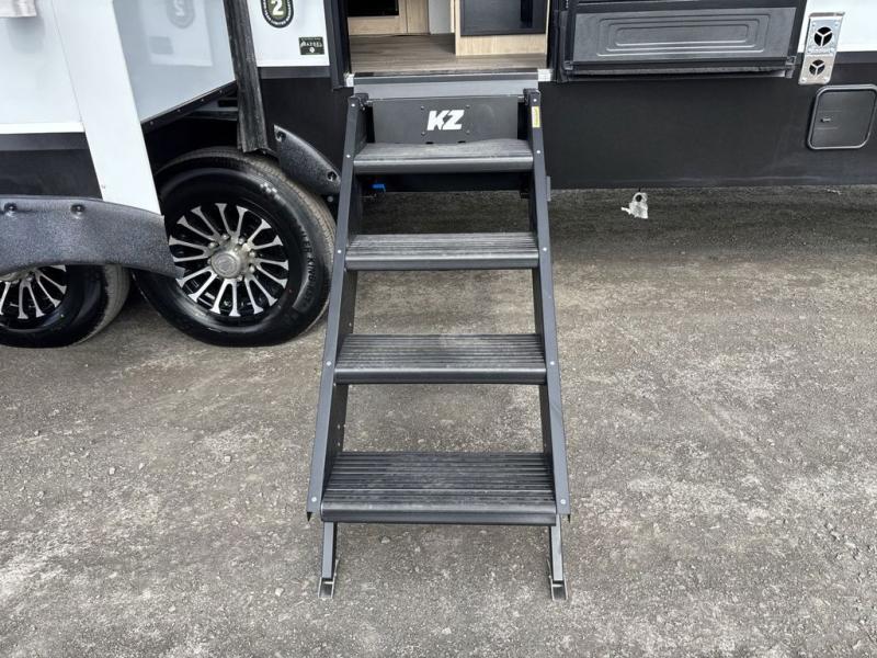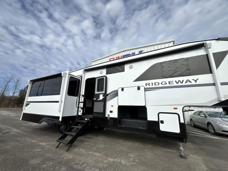 When you choose a Ridgeway fifth wheel by KZ you are choosing a modern design, convenient features, and comfort at every turn! These units have been constructed with some of the most durable materials in the industry, including Tufflex roofing material. The exterior includes a full painted front cap, a fully-finished, heated and sealed basement storage compartment, and a deluxe heated water convenience center to easily monitor your units water levels. There is also 4-point auto electric leveling, a 2" towing receiver hitch, and many more stand-out exterior features. Once inside, you'll enjoy the ceiling crown molding, 5" gold cabinet hardware, deluxe residential-style furniture, and all-wood lumber core screwed cabinets with hardwood doors. The comforts continue on in the bathroom and bedroom with a shower skylight and built-in seat, large linen closets, a luxurious bedspread, and XL under-bed storage for luggage, extra blankets and more!