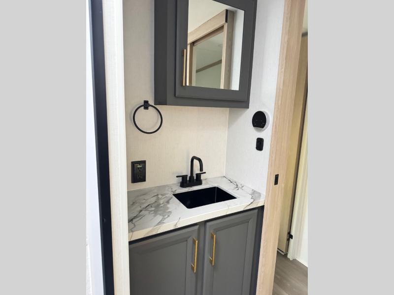 When you choose a Ridgeway fifth wheel by KZ you are choosing a modern design, convenient features, and comfort at every turn! These units have been constructed with some of the most durable materials in the industry, including Tufflex roofing material. The exterior includes a full painted front cap, a fully-finished, heated and sealed basement storage compartment, and a deluxe heated water convenience center to easily monitor your units water levels. There is also 4-point auto electric leveling, a 2" towing receiver hitch, and many more stand-out exterior features. Once inside, you'll enjoy the ceiling crown molding, 5" gold cabinet hardware, deluxe residential-style furniture, and all-wood lumber core screwed cabinets with hardwood doors. The comforts continue on in the bathroom and bedroom with a shower skylight and built-in seat, large linen closets, a luxurious bedspread, and XL under-bed storage for luggage, extra blankets and more!