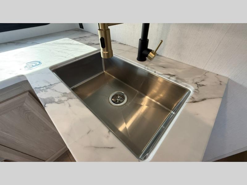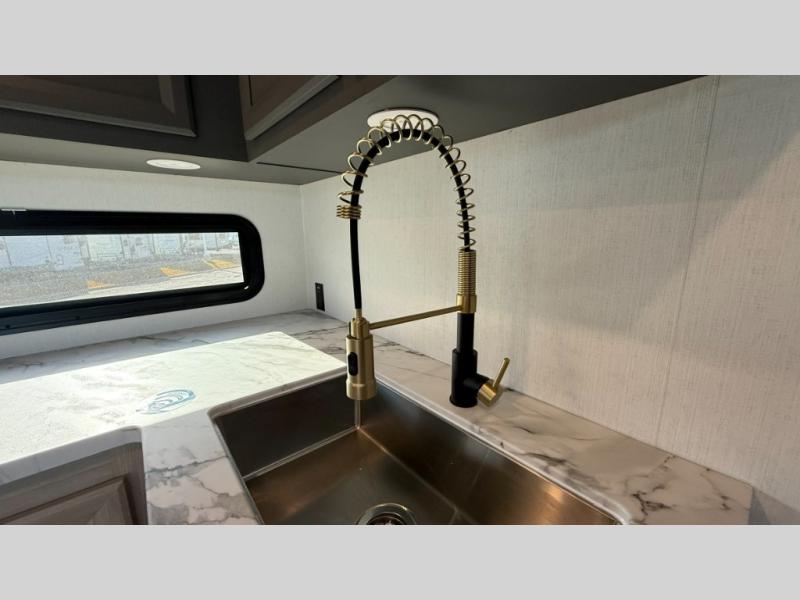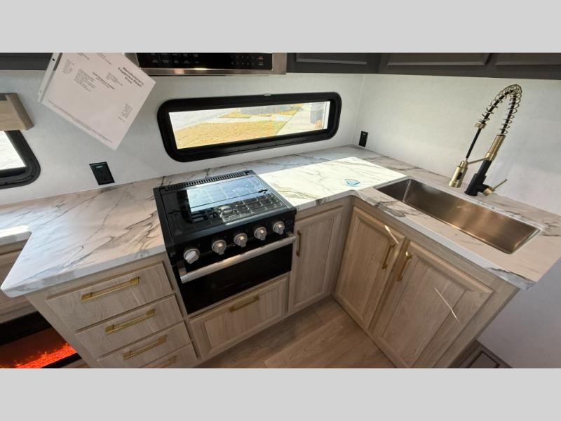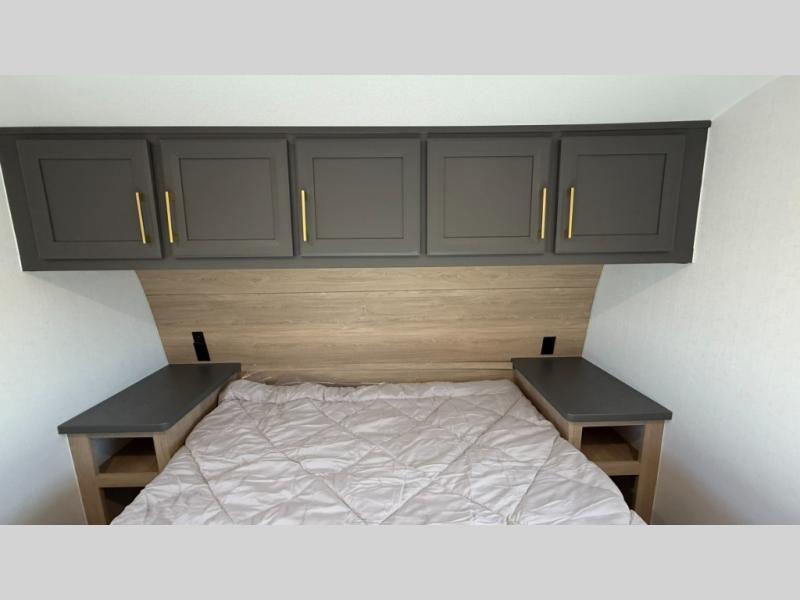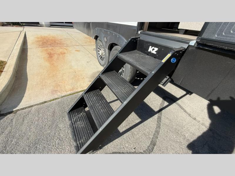 When you choose a Ridgeway fifth wheel by KZ you are choosing a modern design, convenient features, and comfort at every turn! These units have been constructed with some of the most durable materials in the industry, including Tufflex roofing material. The exterior includes a full painted front cap, a fully-finished, heated and sealed basement storage compartment, and a deluxe heated water convenience center to easily monitor your units water levels. There is also 4-point auto electric leveling, a 2" towing receiver hitch, and many more stand-out exterior features. Once inside, you'll enjoy the ceiling crown molding, 5" gold cabinet hardware, deluxe residential-style furniture, and all-wood lumber core screwed cabinets with hardwood doors. The comforts continue on in the bathroom and bedroom with a shower skylight and built-in seat, large linen closets, a luxurious bedspread, and XL under-bed storage for luggage, extra blankets and more!