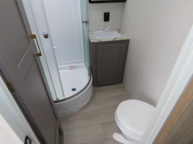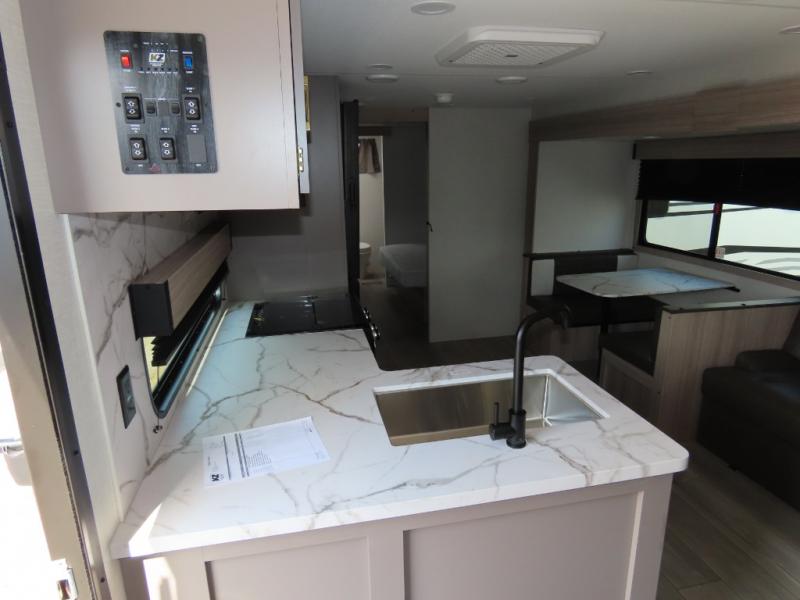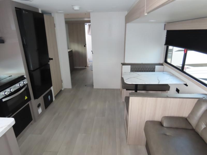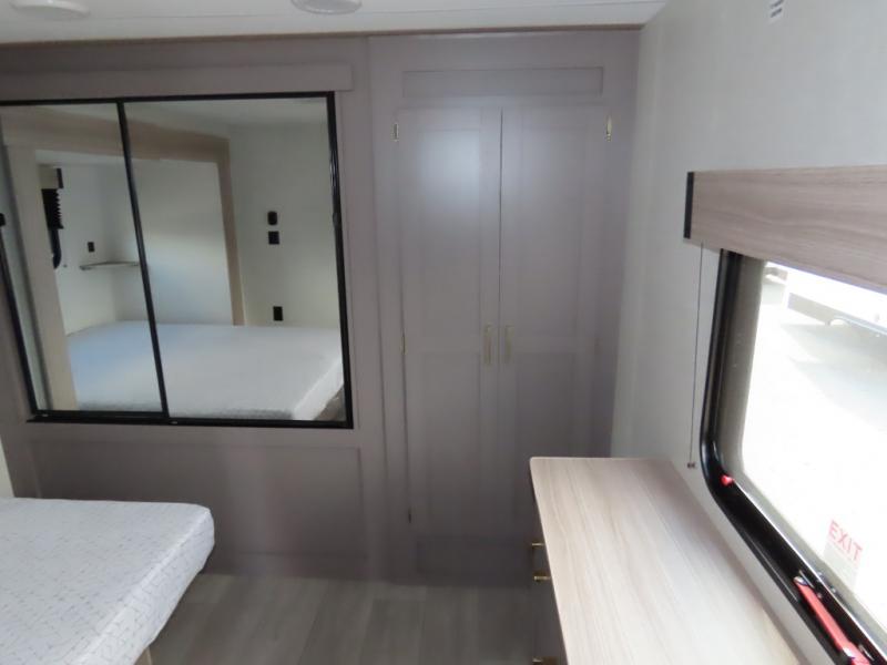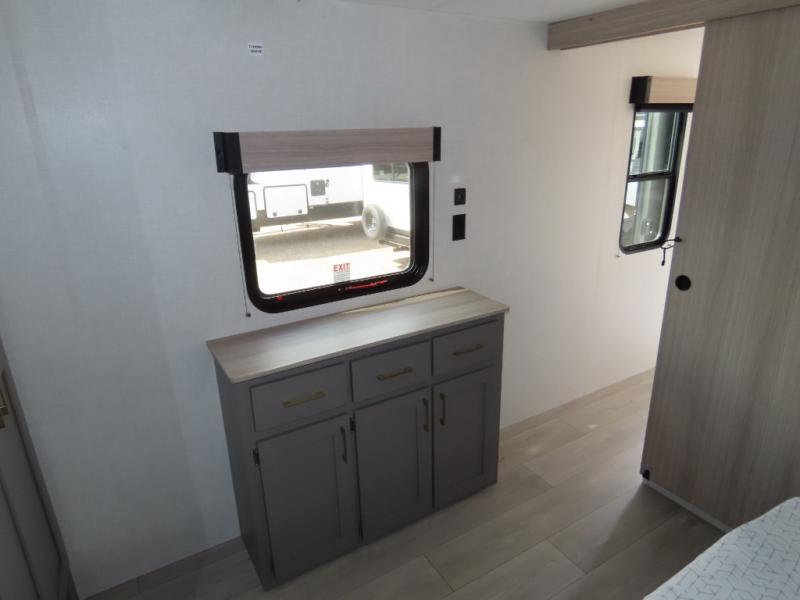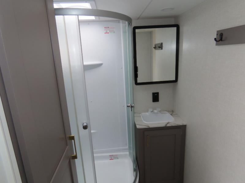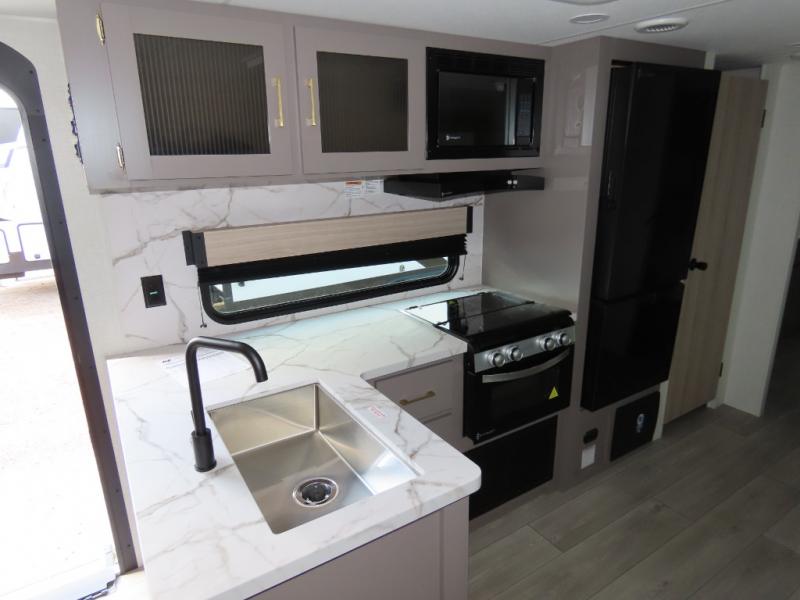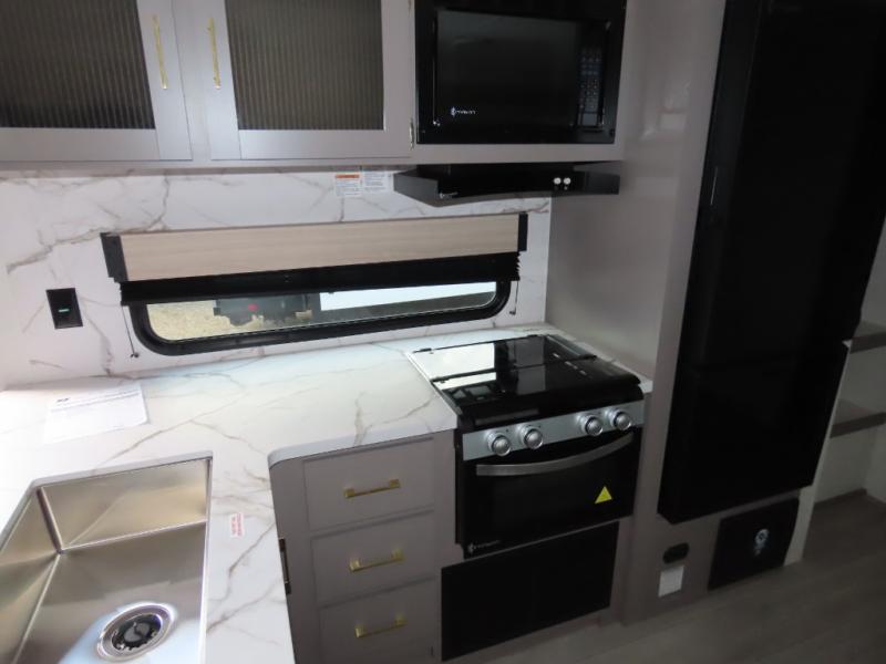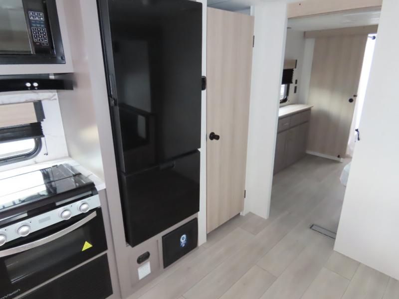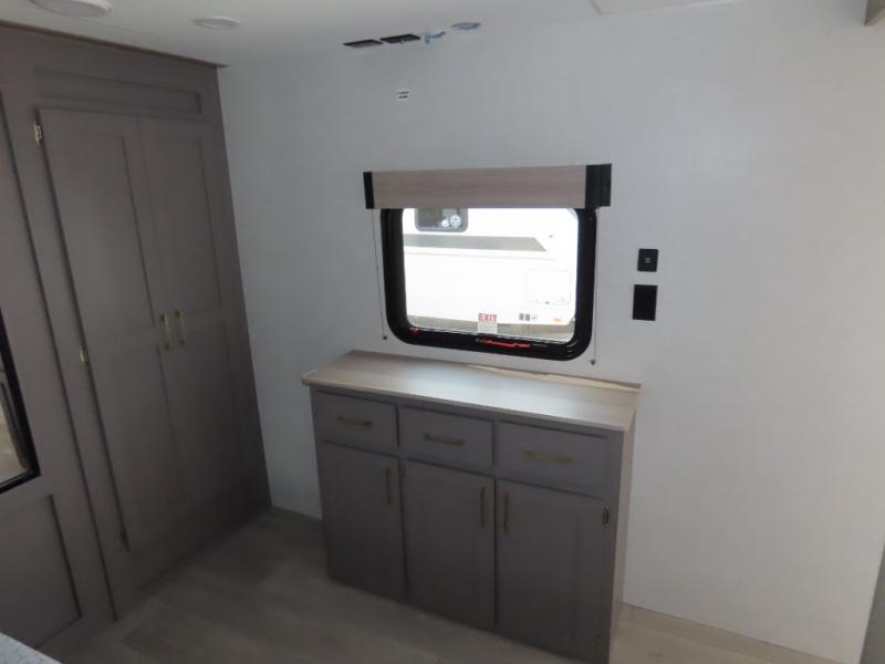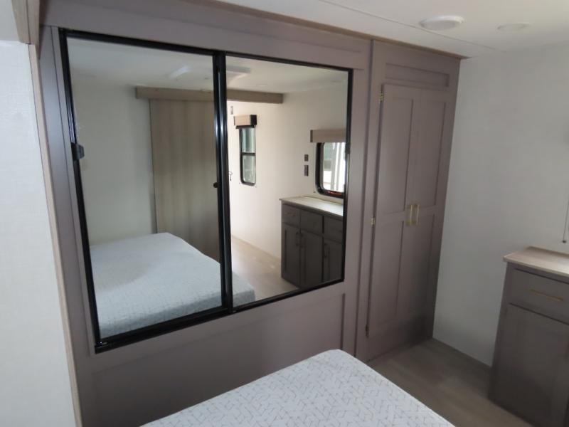 With two full bathrooms, a 30,000 BTU furnace, and three 13,500 BTU air conditioners, the 383DBKSE ensures climate control no matter the weather. Exterior features include a walkable Tufflex PVC roof, durable frame, and generous pass-through storage for all your gear. This trailer combines comfort, durability, and style — making it an ideal choice for family adventures on the open road.