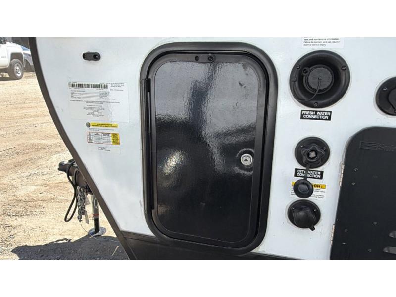 This cozy travel trailer with bunk beds will let you camp with ease! While your guests or the kids take the bunks, you can enjoy the front 54" x 80" bed all to yourselves. There is a private bath with a shower and toilet so won't have to use the camp's facilities. A two burner cooktop and microwave oven will let you make meals each day, and there is a refrigerator to keep perishables fresh. When you're ready for some fresh air, grab your hiking gear from the exterior trunk door and head for the trails!