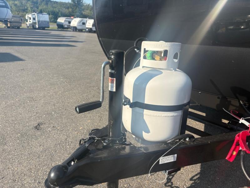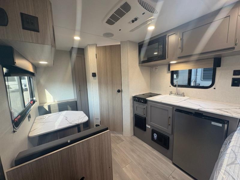 This cozy travel trailer with a front full bed is sure to feel just like home. There is a private bath with a shower and toilet so won't have to use the camp's facilities, and a booth dinette provides dining and additional sleeping space for one adult or two small children. The two burner cooktop and microwave oven will let you make meals each day, and there is a refrigerator to keep perishables fresh. When you're ready for some fresh air, grab your hiking gear from the exterior trunk door and head for the trails!