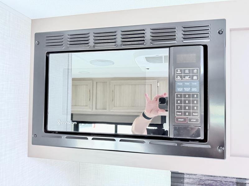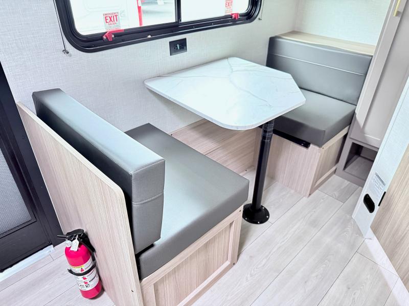 This cozy travel trailer with a front full bed is sure to feel just like home. There is a private bath with a shower and toilet so won't have to use the camp's facilities, and a booth dinette provides dining and additional sleeping space for one adult or two small children. The two burner cooktop and microwave oven will let you make meals each day, and there is a refrigerator to keep perishables fresh. When you're ready for some fresh air, grab your hiking gear from the exterior trunk door and head for the trails!