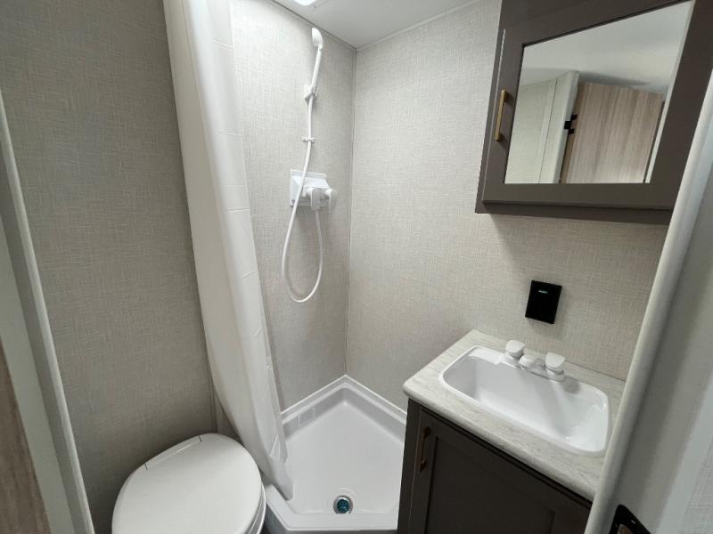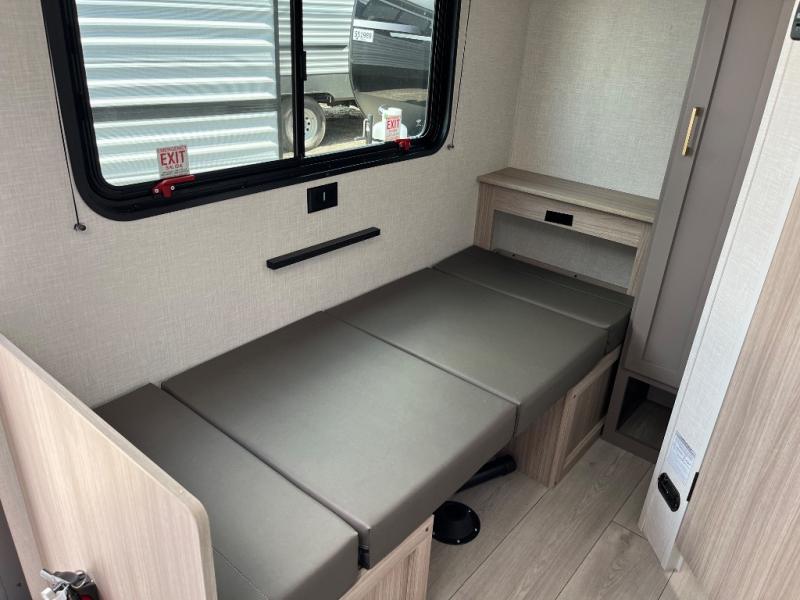 This cozy travel trailer with a front full bed is sure to feel just like home. There is a private bath with a shower and toilet so won't have to use the camp's facilities, and a booth dinette provides dining and additional sleeping space for one adult or two small children. The two burner cooktop and microwave oven will let you make meals each day, and there is a refrigerator to keep perishables fresh. When you're ready for some fresh air, grab your hiking gear from the exterior trunk door and head for the trails!
