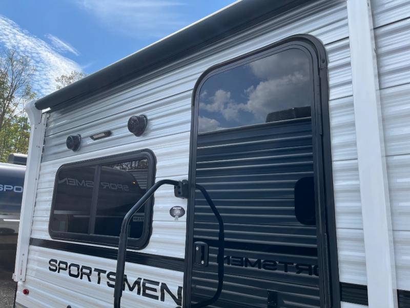 With any Sportsmen Classis travel trailer by KZ you will find durable construction materials, like the 3/8" fully-walkable roof and the one-piece seamless Tufflex material. Each model includes scissor-style stabilizer jacks, a Key-Alike program for baggage and entry doors, and a Leash Latch with a bonus beverage opener. You will find interior and exterior speakers plus backup camera prep and solar prep. The Sportsmen Classic is designed to make you feel at home with rail-style cabinet doors, residential grade linoleum, and plenty of storage space for all your belongings.