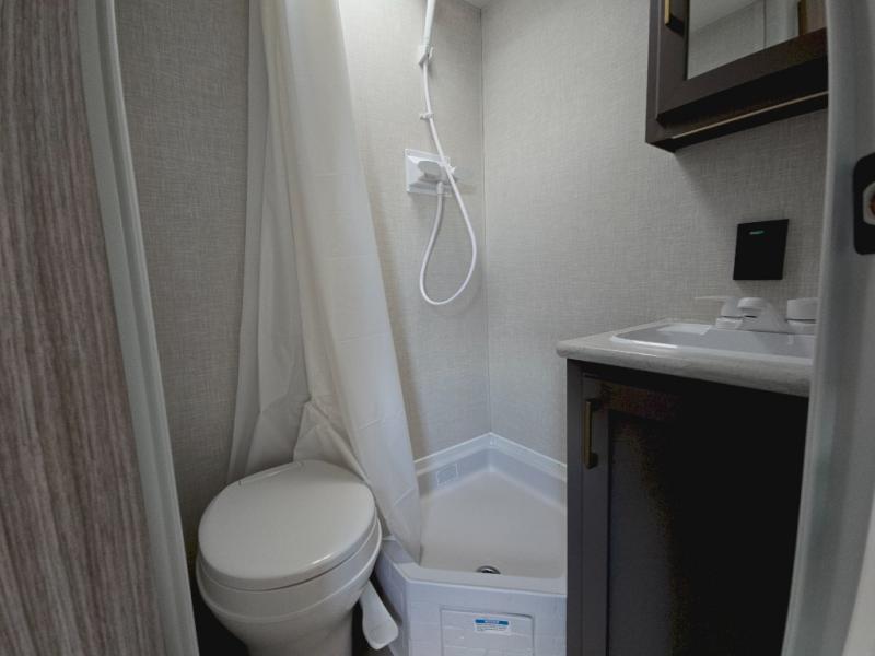 This cozy travel trailer with a front full bed is sure to feel just like home. There is a private bath with a shower and toilet so won't have to use the camp's facilities, and a booth dinette provides dining and additional sleeping space for one adult or two small children. The two burner cooktop and microwave oven will let you make meals each day, and there is a refrigerator to keep perishables fresh. When you're ready for some fresh air, grab your hiking gear from the exterior trunk door and head for the trails!