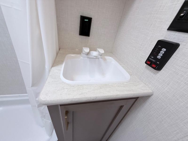 With any Sportsmen Classis travel trailer by KZ you will find durable construction materials, like the 3/8" fully-walkable roof and the one-piece seamless Tufflex material. Each model includes scissor-style stabilizer jacks, a Key-Alike program for baggage and entry doors, and a Leash Latch with a bonus beverage opener. You will find interior and exterior speakers plus backup camera prep and solar prep. The Sportsmen Classic is designed to make you feel at home with rail-style cabinet doors, residential grade linoleum, and plenty of storage space for all your belongings.