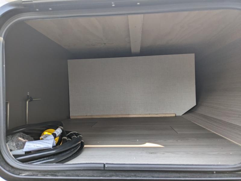 This cozy travel trailer with a front full bed is sure to feel just like home. There is a private bath with a shower and toilet so won't have to use the camp's facilities, and a booth dinette provides dining and additional sleeping space for one adult or two small children. The two burner cooktop and microwave oven will let you make meals each day, and there is a refrigerator to keep perishables fresh. When you're ready for some fresh air, grab your hiking gear from the exterior trunk door and head for the trails!
