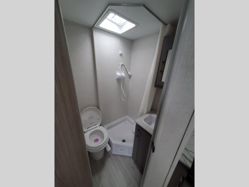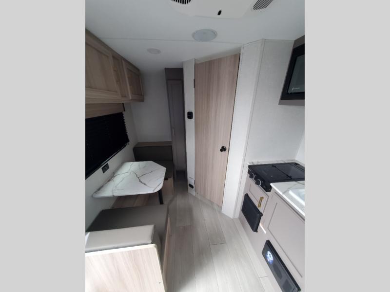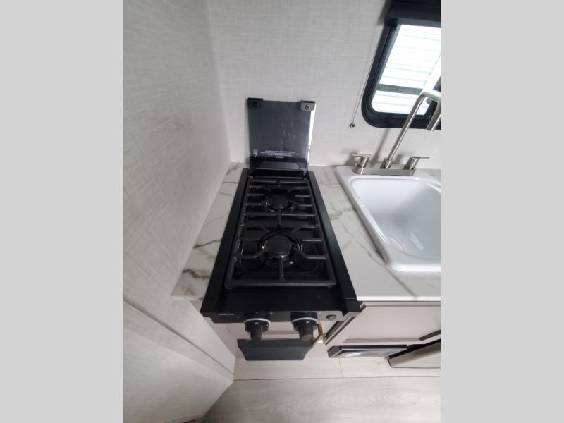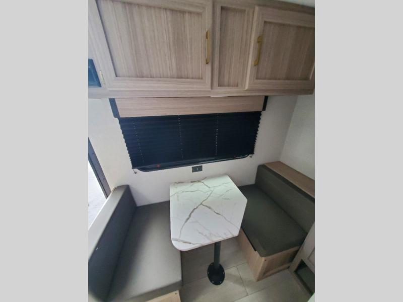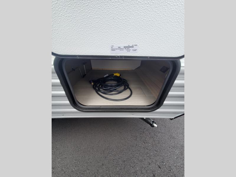 This cozy travel trailer with a front full bed is sure to feel just like home. There is a private bath with a shower and toilet so won't have to use the camp's facilities, and a booth dinette provides dining and additional sleeping space for one adult or two small children. The two burner cooktop and microwave oven will let you make meals each day, and there is a refrigerator to keep perishables fresh. When you're ready for some fresh air, grab your hiking gear from the exterior trunk door and head for the trails!