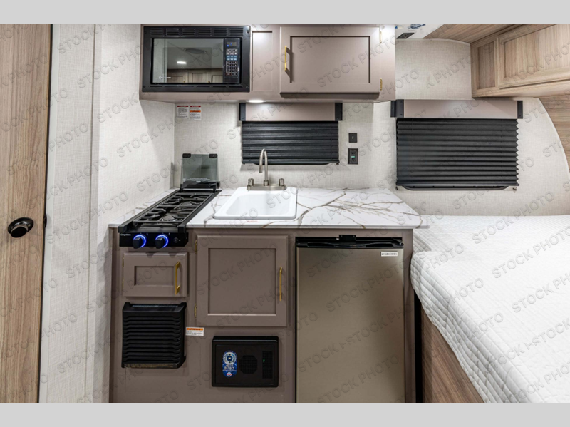 With any Sportsmen Classis travel trailer by KZ you will find durable construction materials, like the 3/8" fully-walkable roof and the one-piece seamless Tufflex material. Each model includes scissor-style stabilizer jacks, a Key-Alike program for baggage and entry doors, and a Leash Latch with a bonus beverage opener. You will find interior and exterior speakers plus backup camera prep and solar prep. The Sportsmen Classic is designed to make you feel at home with rail-style cabinet doors, residential grade linoleum, and plenty of storage space for all your belongings.