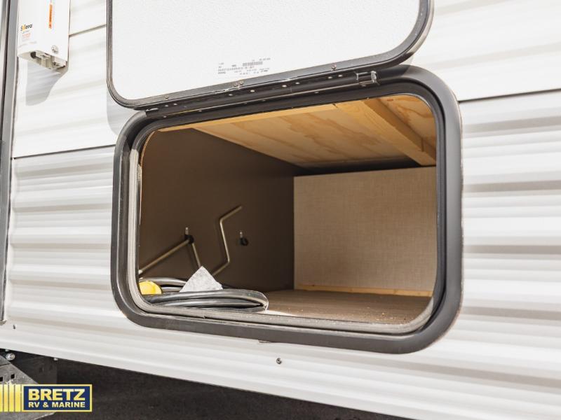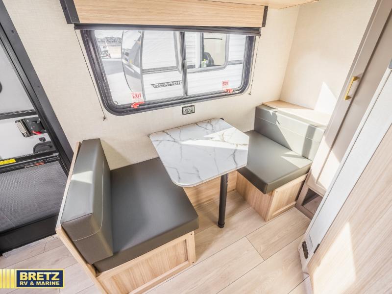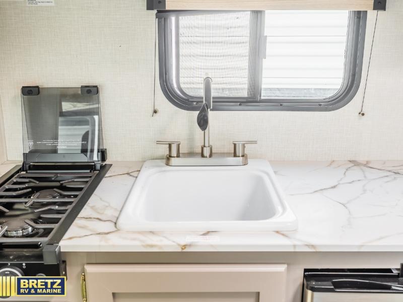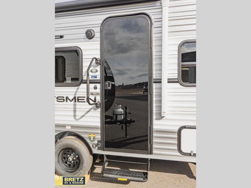With any Sportsmen Classis travel trailer by KZ you will find durable construction materials, like the 3/8" fully-walkable roof and the one-piece seamless Tufflex material. Each model includes scissor-style stabilizer jacks, a Key-Alike program for baggage and entry doors, and a Leash Latch with a bonus beverage opener. You will find interior and exterior speakers plus backup camera prep and solar prep. The Sportsmen Classic is designed to make you feel at home with rail-style cabinet doors, residential grade linoleum, and plenty of storage space for all your belongings.