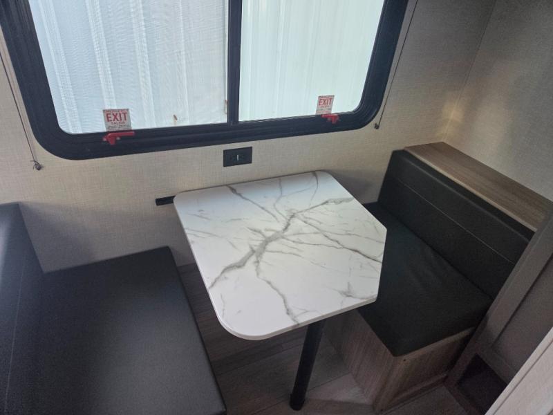 This cozy travel trailer with a front full bed is sure to feel just like home. There is a private bath with a shower and toilet so won't have to use the camp's facilities, and a booth dinette provides dining and additional sleeping space for one adult or two small children. The two burner cooktop and microwave oven will let you make meals each day, and there is a refrigerator to keep perishables fresh. When you're ready for some fresh air, grab your hiking gear from the exterior trunk door and head for the trails!