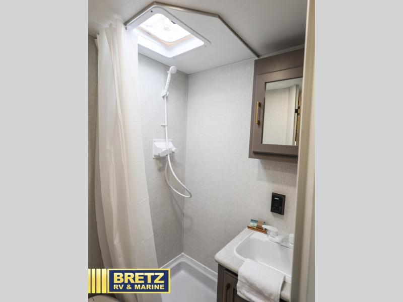 With any Sportsmen Classis travel trailer by KZ you will find durable construction materials, like the 3/8" fully-walkable roof and the one-piece seamless Tufflex material. Each model includes scissor-style stabilizer jacks, a Key-Alike program for baggage and entry doors, and a Leash Latch with a bonus beverage opener. You will find interior and exterior speakers plus backup camera prep and solar prep. The Sportsmen Classic is designed to make you feel at home with rail-style cabinet doors, residential grade linoleum, and plenty of storage space for all your belongings.