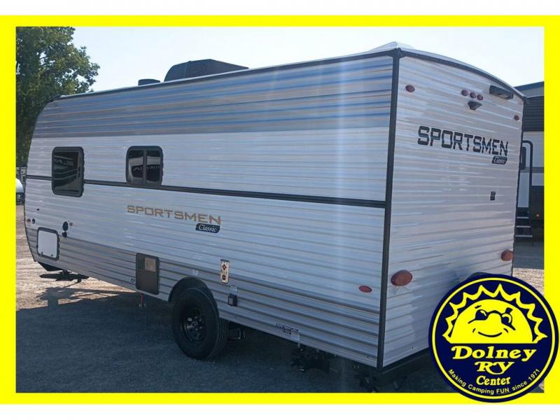 With any Sportsmen Classis travel trailer by KZ you will find durable construction materials, like the 3/8" fully-walkable roof and the one-piece seamless Tufflex material. Each model includes scissor-style stabilizer jacks, a Key-Alike program for baggage and entry doors, and a Leash Latch with a bonus beverage opener. You will find interior and exterior speakers plus backup camera prep and solar prep. The Sportsmen Classic is designed to make you feel at home with rail-style cabinet doors, residential grade linoleum, and plenty of storage space for all your belongings.