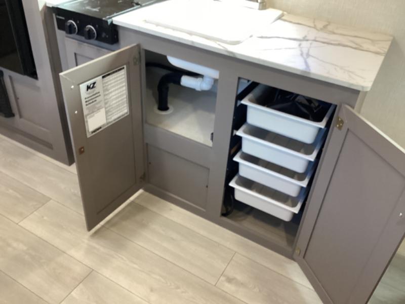 With any Sportsmen Classis travel trailer by KZ you will find durable construction materials, like the 3/8" fully-walkable roof and the one-piece seamless Tufflex material. Each model includes scissor-style stabilizer jacks, a Key-Alike program for baggage and entry doors, and a Leash Latch with a bonus beverage opener. You will find interior and exterior speakers plus backup camera prep and solar prep. The Sportsmen Classic is designed to make you feel at home with rail-style cabinet doors, residential grade linoleum, and plenty of storage space for all your belongings.