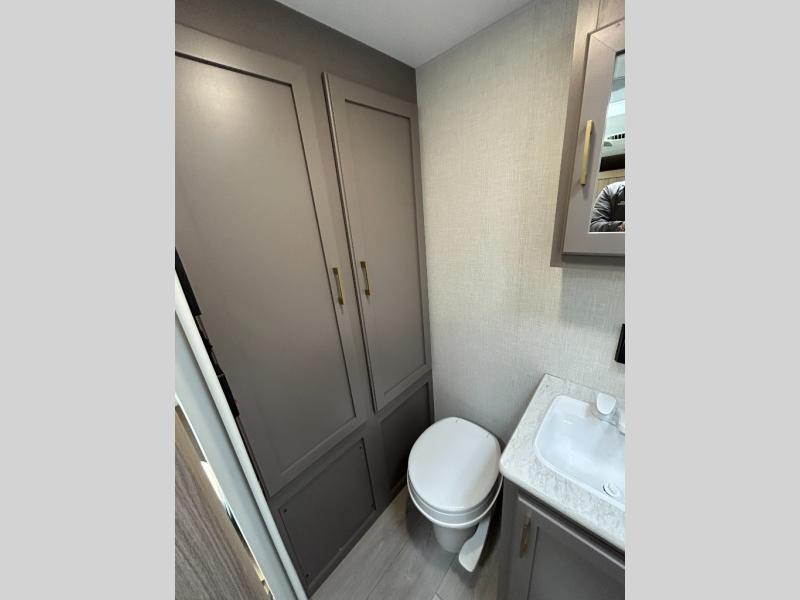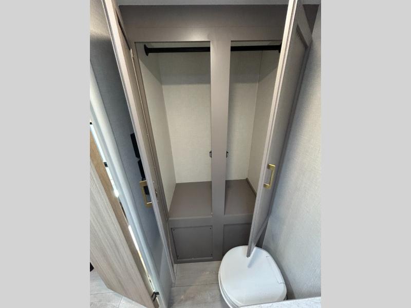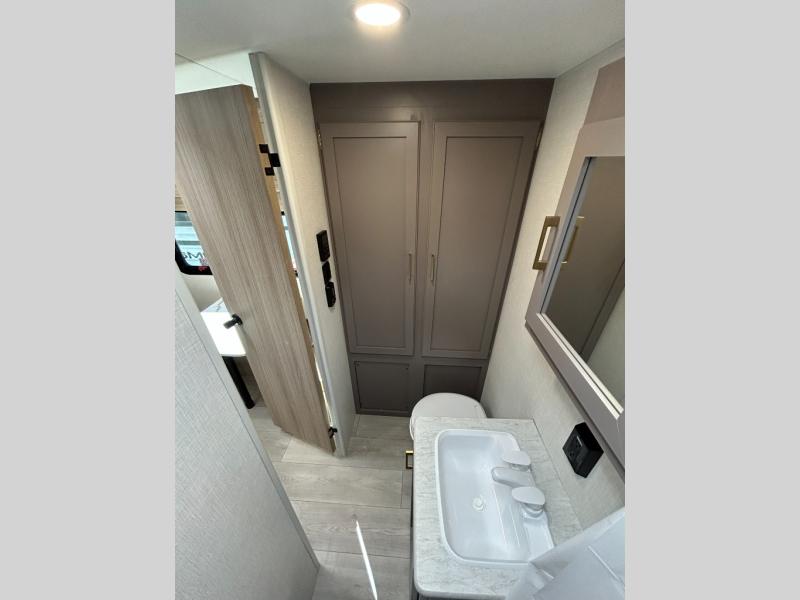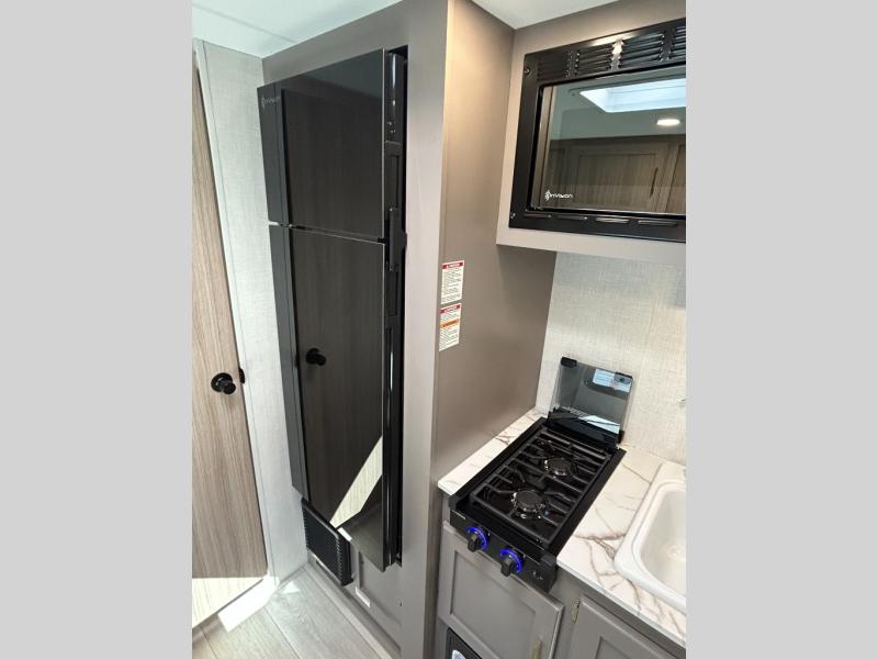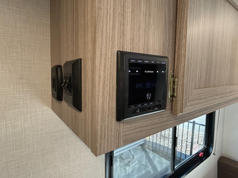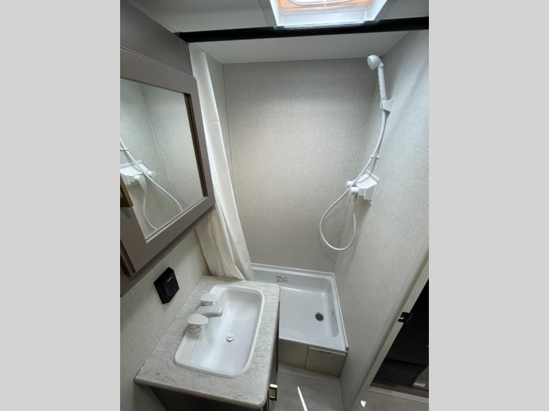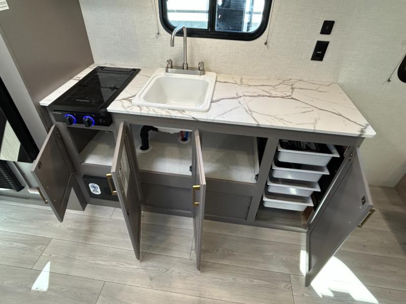 This versatile travel trailer is perfect for weekend trips to the lake. You'll sleep soundly each night on the 60" x 74" mattress, and there are dual bedside wardrobes to keep your things tidy. This model also includes a booth dinette that can be used for dining and sleeping space. The chef of your group can prepare meals on the two burner cooktop with a glass cover, and leftovers can go in the 8 cu. ft. 12V refrigerator. This model also includes a 12' power awning that will provide shade while you're outdoors as well.