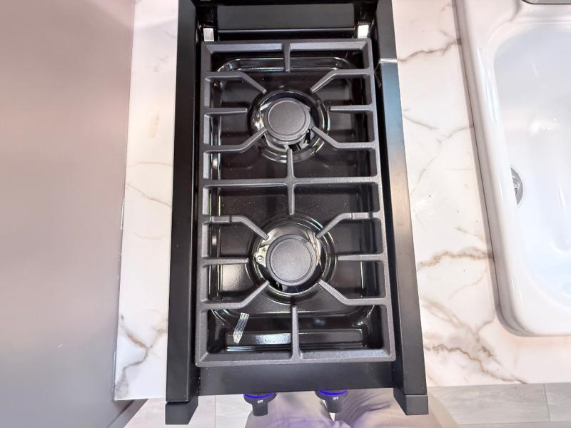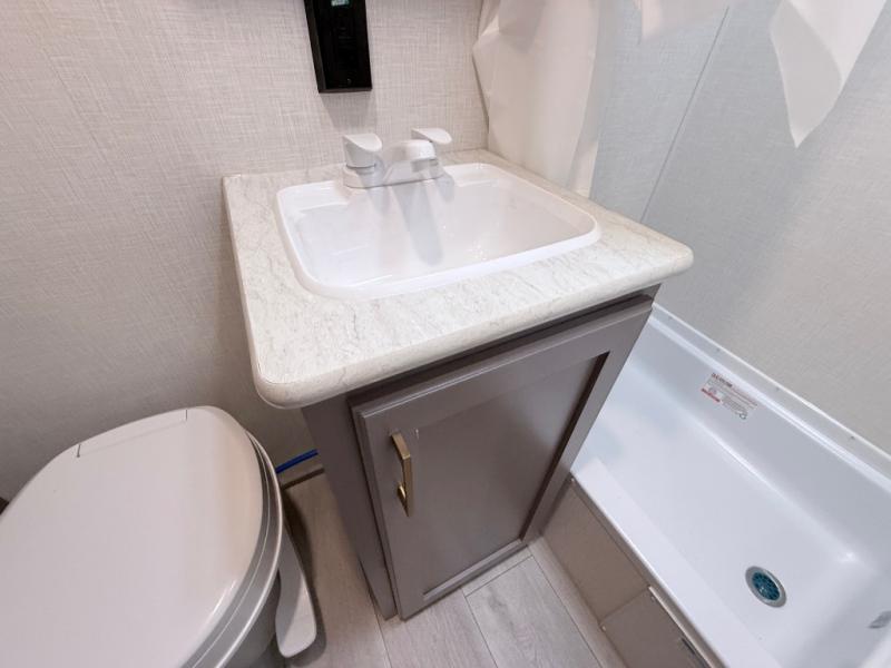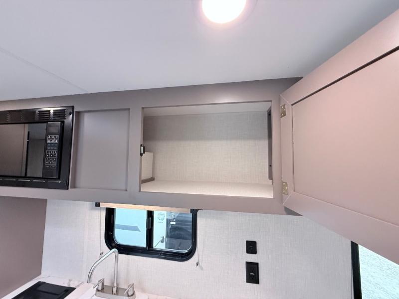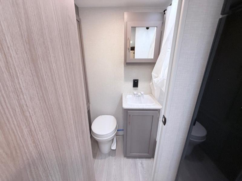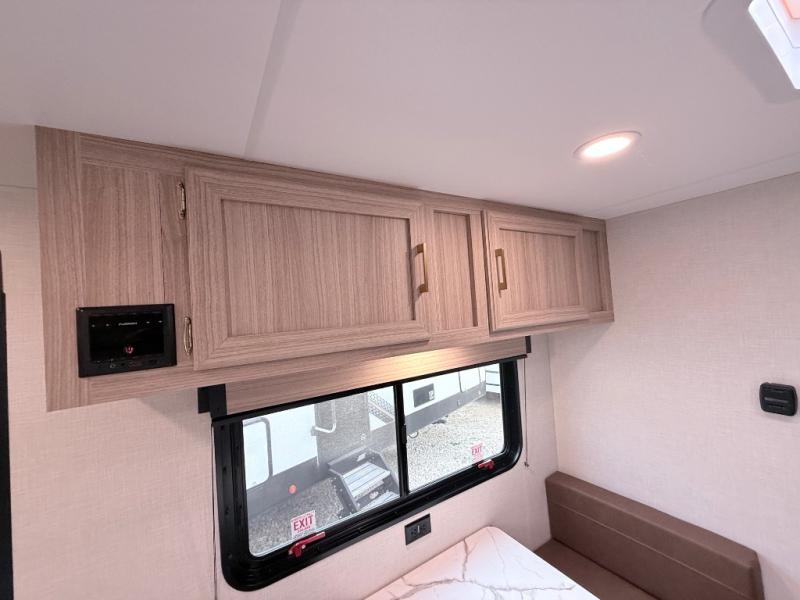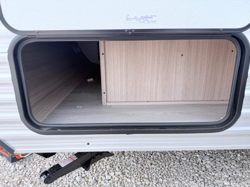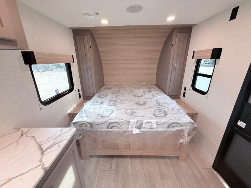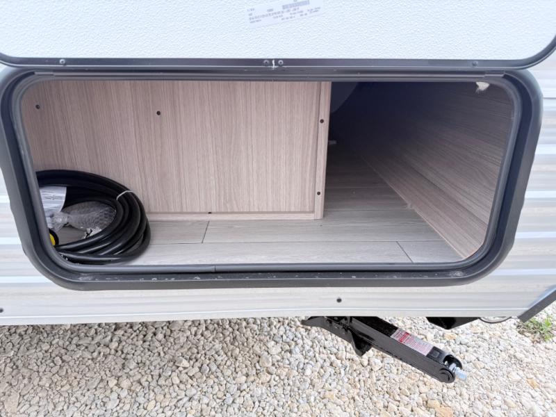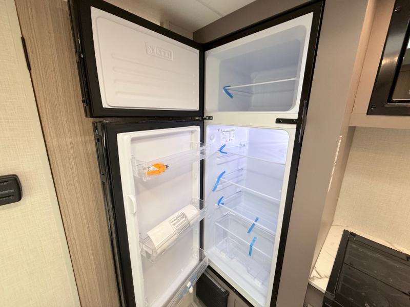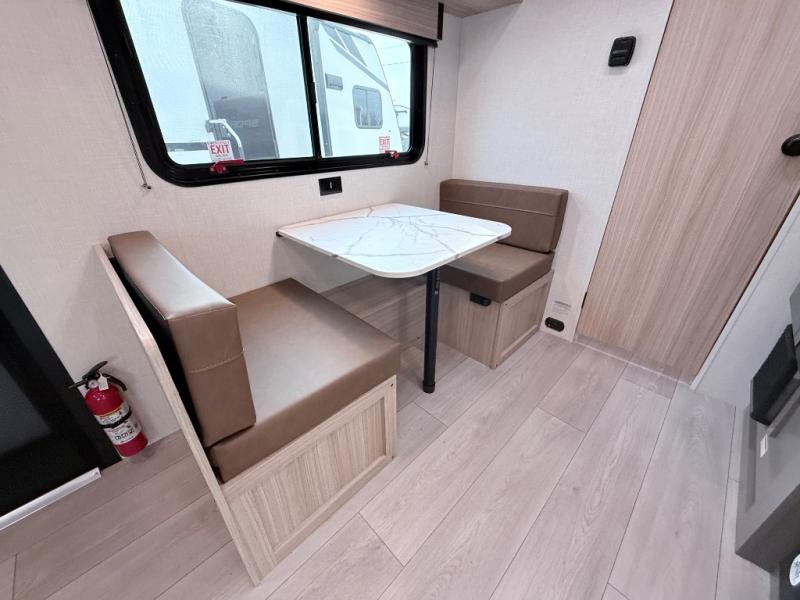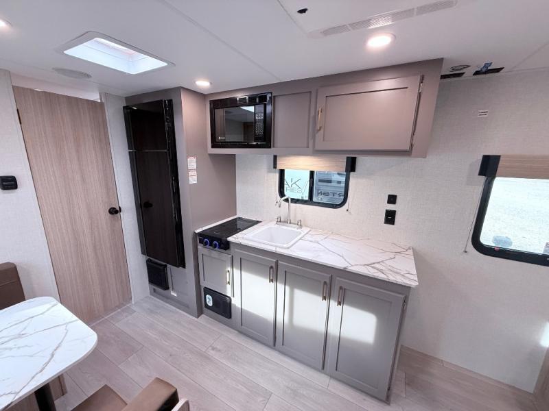 This versatile travel trailer is perfect for weekend trips to the lake. You'll sleep soundly each night on the 60" x 74" mattress, and there are dual bedside wardrobes to keep your things tidy. This model also includes a booth dinette that can be used for dining and sleeping space. The chef of your group can prepare meals on the two burner cooktop with a glass cover, and leftovers can go in the 8 cu. ft. 12V refrigerator. This model also includes a 12' power awning that will provide shade while you're outdoors as well.