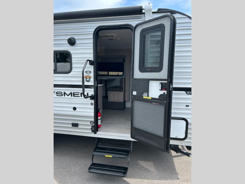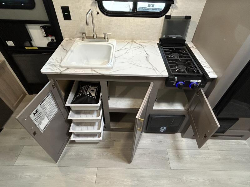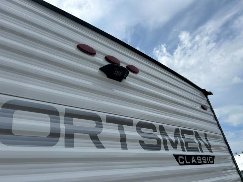 With any Sportsmen Classis travel trailer by KZ you will find durable construction materials, like the 3/8" fully-walkable roof and the one-piece seamless Tufflex material. Each model includes scissor-style stabilizer jacks, a Key-Alike program for baggage and entry doors, and a Leash Latch with a bonus beverage opener. You will find interior and exterior speakers plus backup camera prep and solar prep. The Sportsmen Classic is designed to make you feel at home with rail-style cabinet doors, residential grade linoleum, and plenty of storage space for all your belongings.
