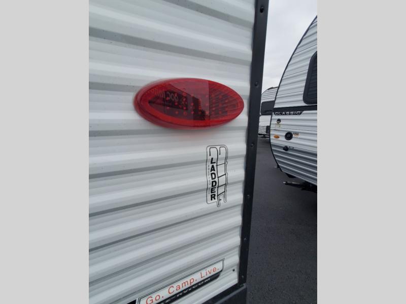 With any Sportsmen Classis travel trailer by KZ you will find durable construction materials, like the 3/8" fully-walkable roof and the one-piece seamless Tufflex material. Each model includes scissor-style stabilizer jacks, a Key-Alike program for baggage and entry doors, and a Leash Latch with a bonus beverage opener. You will find interior and exterior speakers plus backup camera prep and solar prep. The Sportsmen Classic is designed to make you feel at home with rail-style cabinet doors, residential grade linoleum, and plenty of storage space for all your belongings.