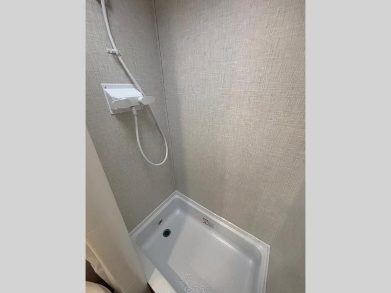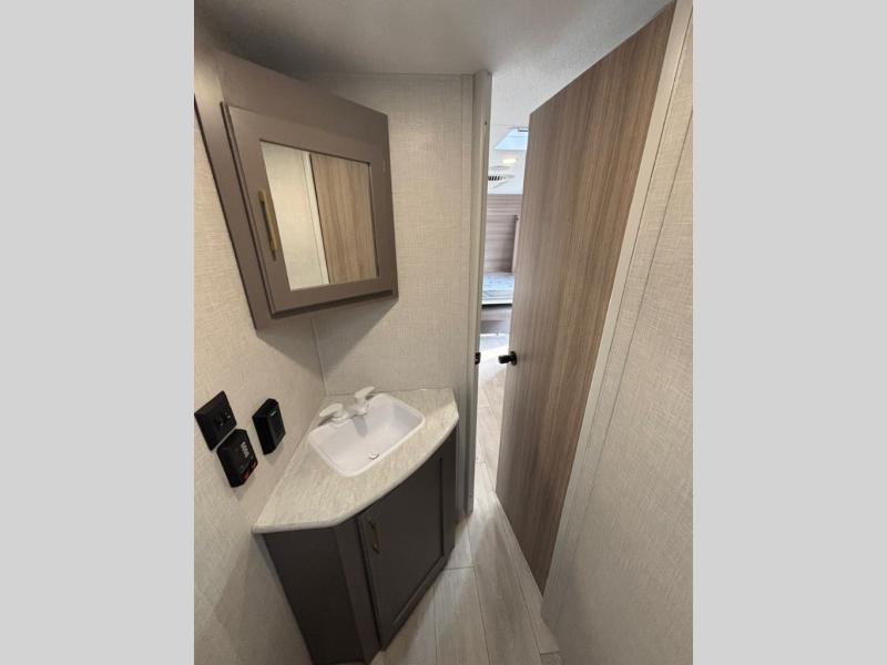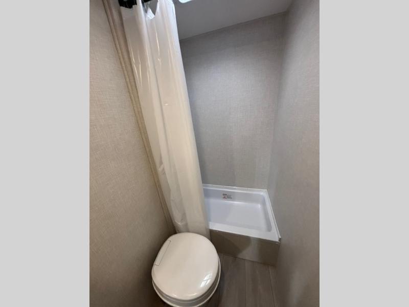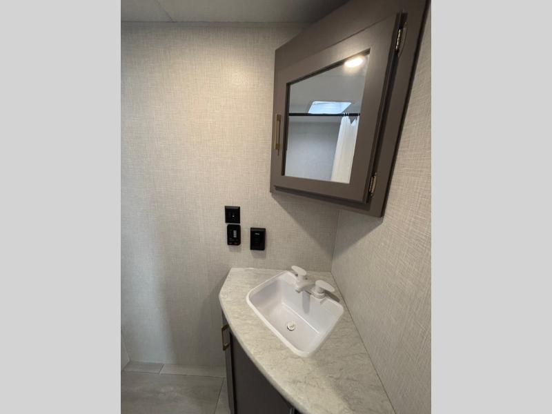 Full Dry Bath: A bathroom with shower, toilet, and vanity adds everyday convenience to camping life