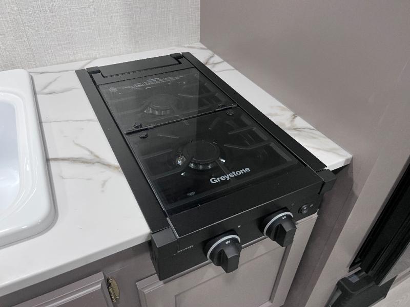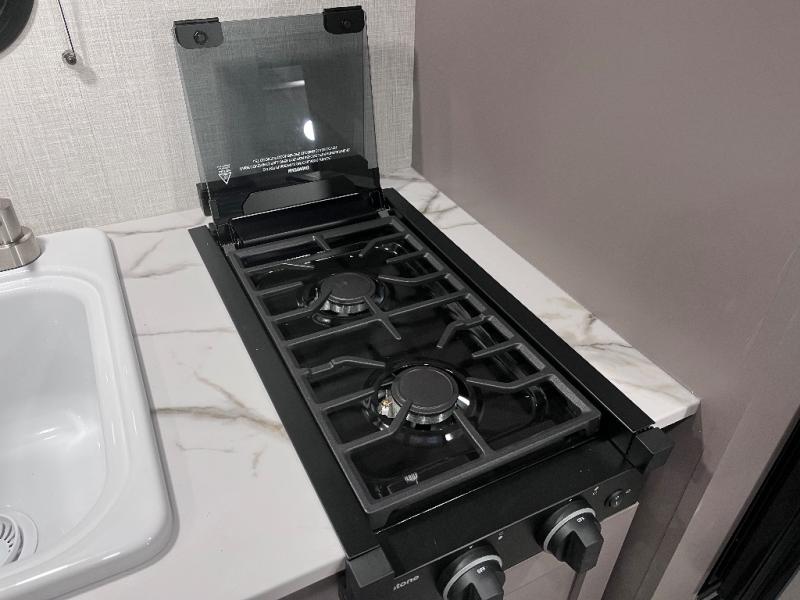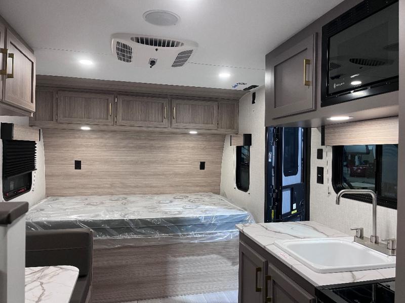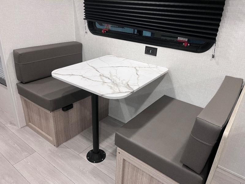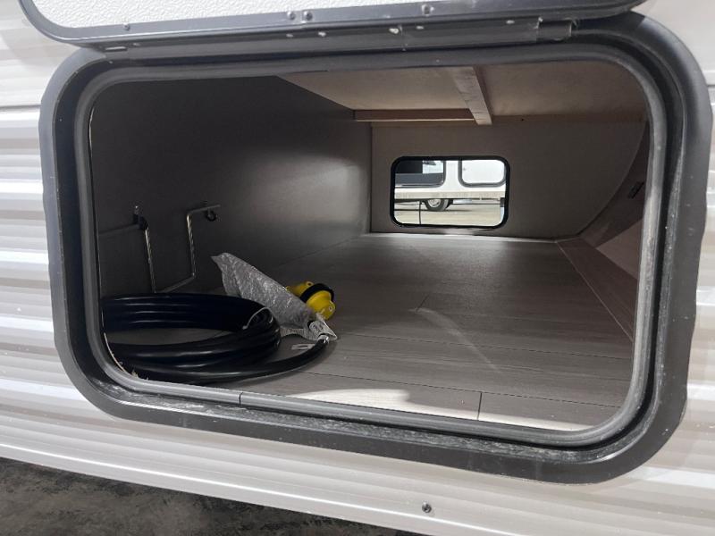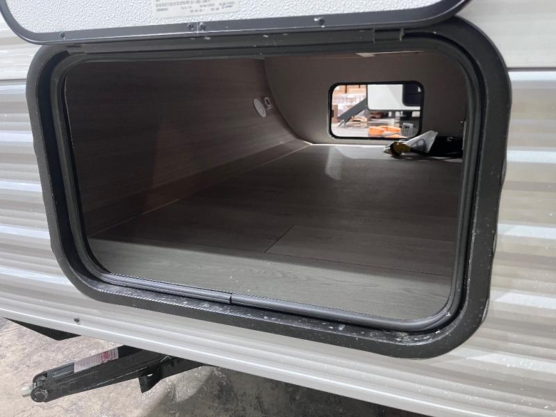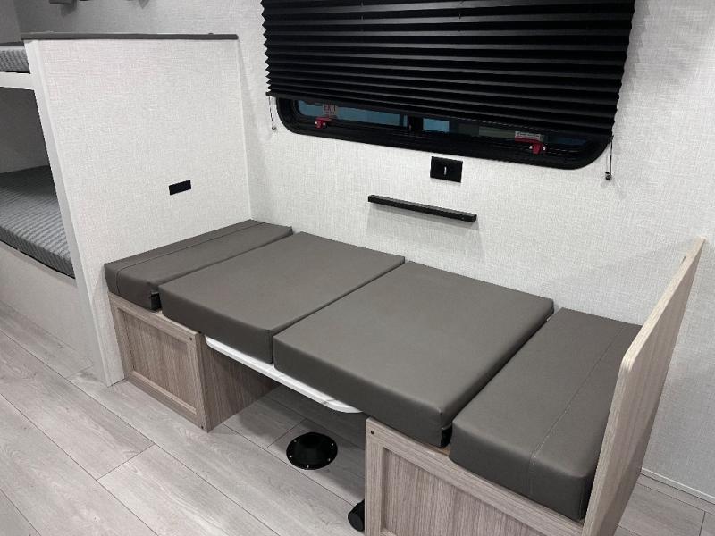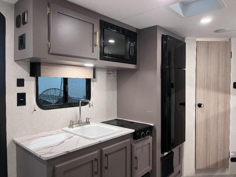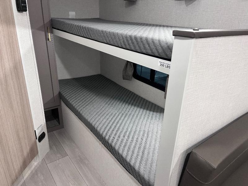 Bunk beds make this travel trailer the perfect family-friendly unit, so head to your local state park! The front 54" x 80" bed will provide comfortable sleeping space for you, plus there is a booth dinette for one or two little ones to sleep on. This model includes a two burner cooktop, a microwave oven, plus a single bowl sink for hassle-free clean up. The 13' power awning will protect you from the elements, and the pass-through storage will be perfect for fishing poles.