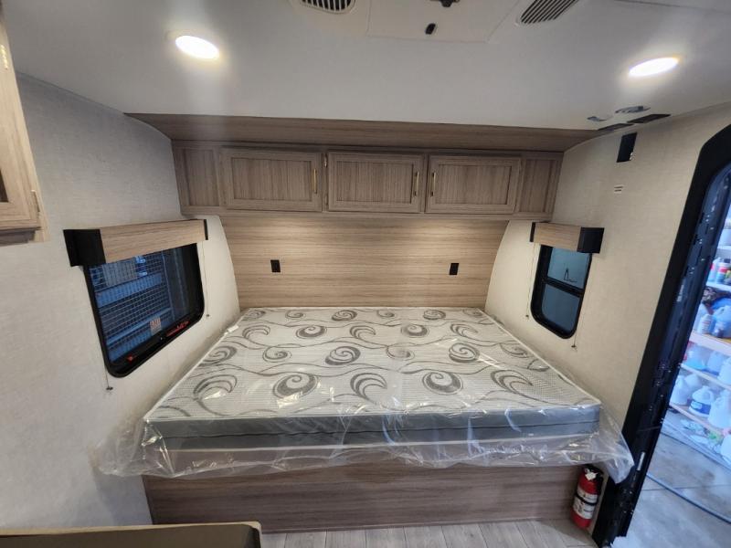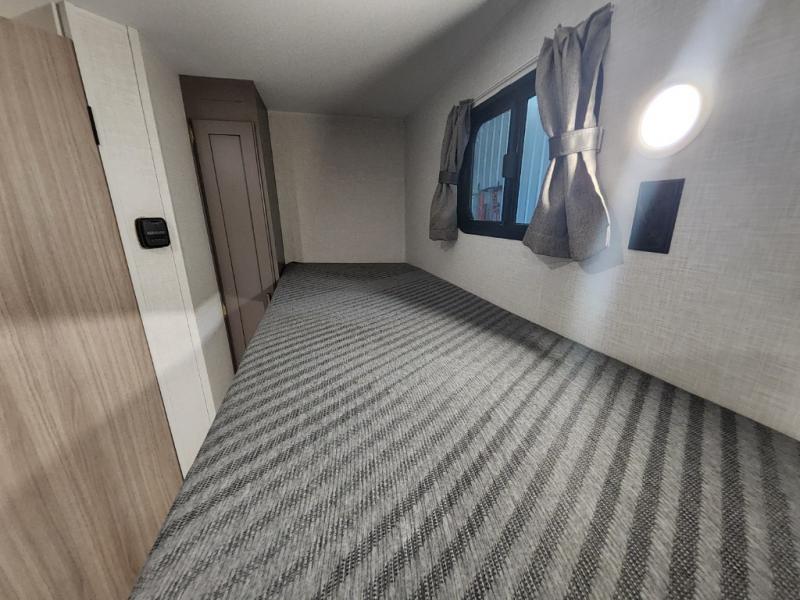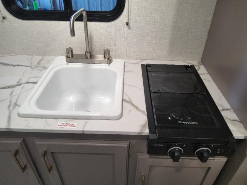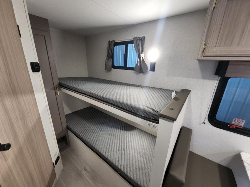 Bunk beds make this travel trailer the perfect family-friendly unit, so head to your local state park! The front 54" x 80" bed will provide comfortable sleeping space for you, plus there is a booth dinette for one or two little ones to sleep on. This model includes a two burner cooktop, a microwave oven, plus a single bowl sink for hassle-free clean up. The 13' power awning will protect you from the elements, and the pass-through storage will be perfect for fishing poles.