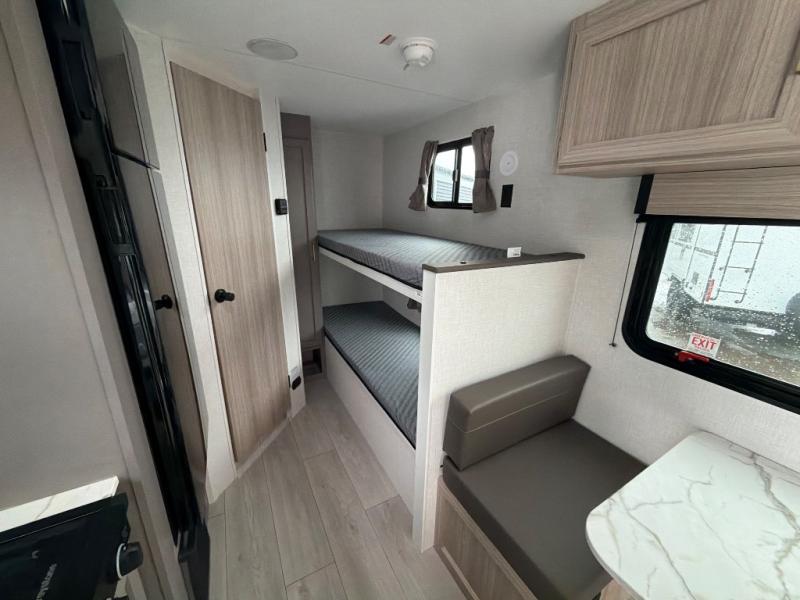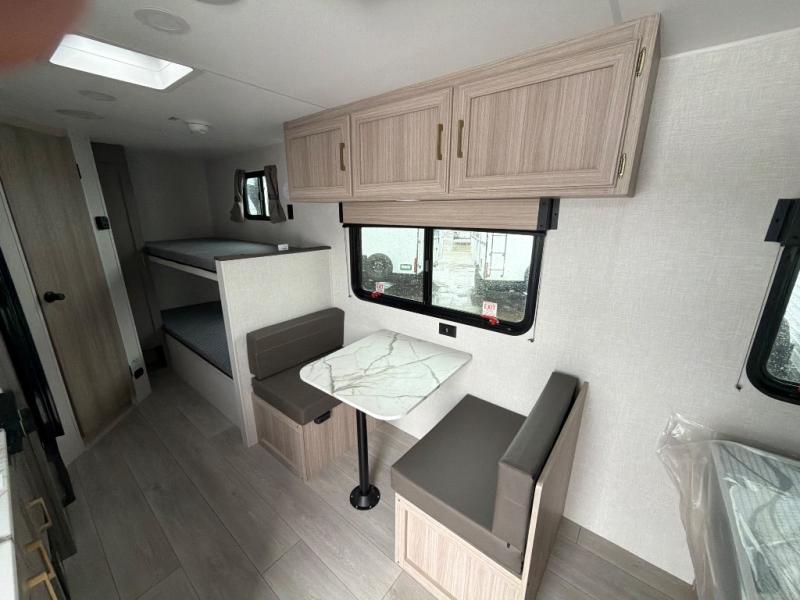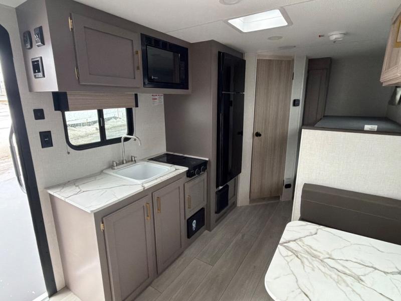 Bunk beds make this travel trailer the perfect family-friendly unit, so head to your local state park! The front 54" x 80" bed will provide comfortable sleeping space for you, plus there is a booth dinette for one or two little ones to sleep on. This model includes a two burner cooktop, a microwave oven, plus a single bowl sink for hassle-free clean up. The 13' power awning will protect you from the elements, and the pass-through storage will be perfect for fishing poles.