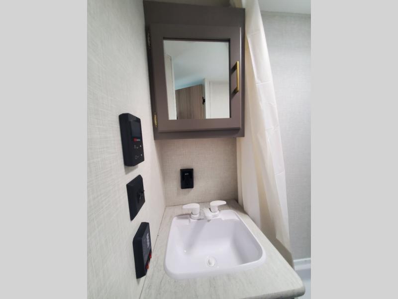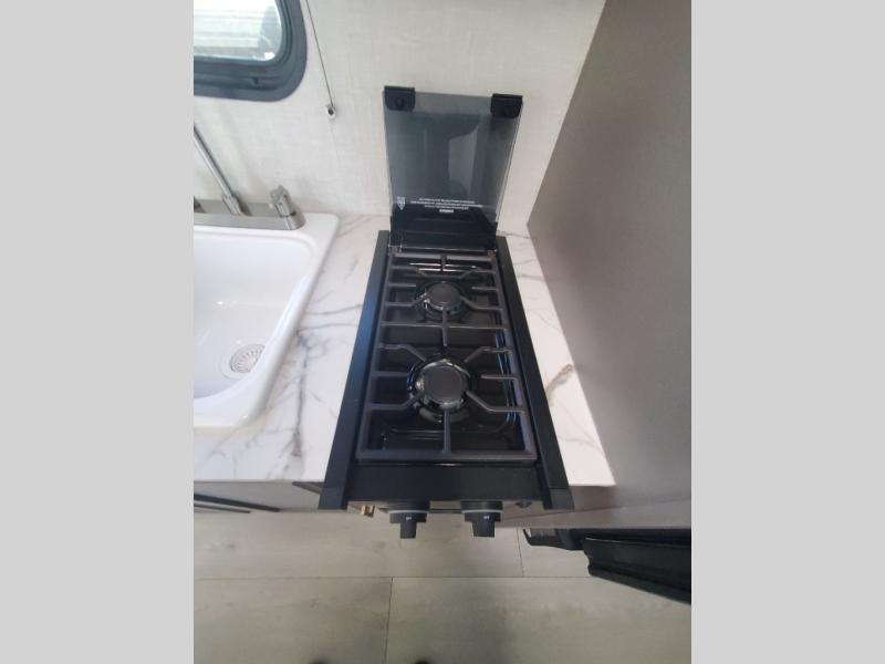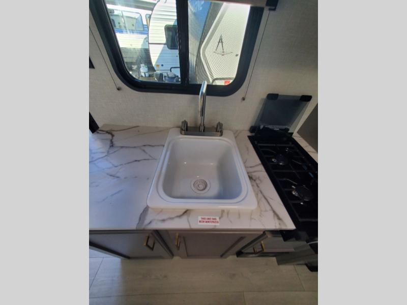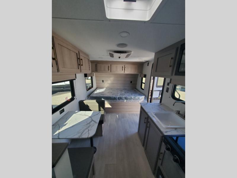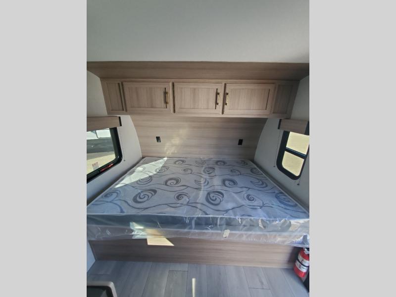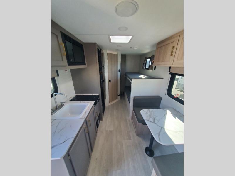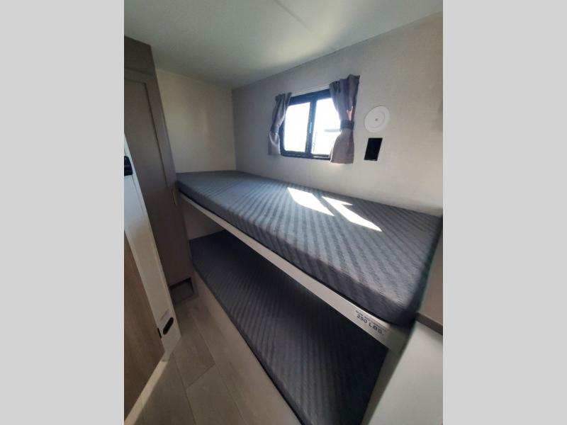 Bunk beds make this travel trailer the perfect family-friendly unit, so head to your local state park! The front 54" x 80" bed will provide comfortable sleeping space for you, plus there is a booth dinette for one or two little ones to sleep on. This model includes a two burner cooktop, a microwave oven, plus a single bowl sink for hassle-free clean up. The 13' power awning will protect you from the elements, and the pass-through storage will be perfect for fishing poles.