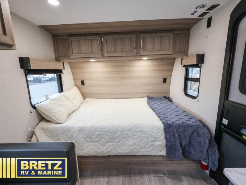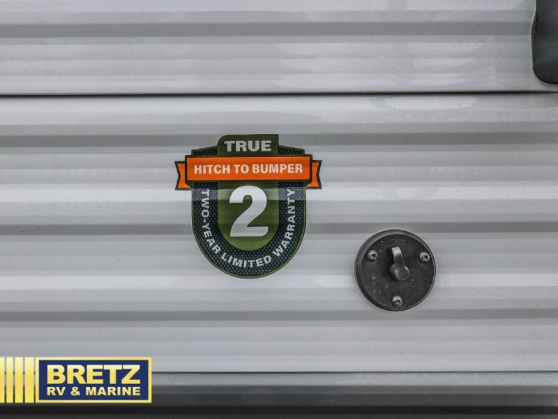 Bunk beds make this travel trailer the perfect family-friendly unit, so head to your local state park! The front 54" x 80" bed will provide comfortable sleeping space for you, plus there is a booth dinette for one or two little ones to sleep on. This model includes a two burner cooktop, a microwave oven, plus a single bowl sink for hassle-free clean up. The 13' power awning will protect you from the elements, and the pass-through storage will be perfect for fishing poles.
